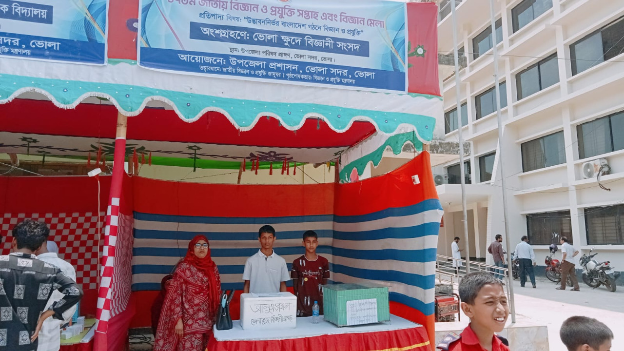 শনিবার মেলার উদ্বোধন করেন উপজেলার নির্বাহী অফিসার মো: আরিফুজ্জামান, উপস্থিত ছিলেন উপজেলা শিক্ষা অফিসারসহ বিভিন্ন দপ্তরের কর্মকর্তারা। মেলায় ভোলা ক্ষুদে বিজ্ঞানী সংসদ, সরকারি বালিকা উচ্চ বিদ্যালয়, সরকারি উচ্চ বিদ্যালয়, ভোলা সরকারি কলেজ, টাউন কমিটি মাধ্যমিক বিদ্যালয়, চন্দ্র প্রসাদ মাধ্যমিক বিদ্যালয়, নাজিউর রহমান কলেজসহ ১১ টি প্রতিষ্ঠান অংশ নেয়। ভোলা ক্ষুদে বিজ্ঞানী সংসদের যুগ্ম সম্পাদক নাহিদ মোর্শেদা মিশু জানান, তাদের সংগঠনের ক্ষুদে বিজ্ঞানীরা নতুন নতুন আইডিয়া নিয়ে গবেষনা করছে। তারা আবিস্কার করছে সূর্যের তাপকে কয়েকগুন বৃদ্ধি করে তা দিয়ে বোতলজাত খাবার পানি বিশুদ্ধ করা, ভোলার বাম্পার ফলন আলু কিভাবে সংরক্ষণ করা যায়, ওই প্রজেক্ট তৈরী করা হয়েছে।