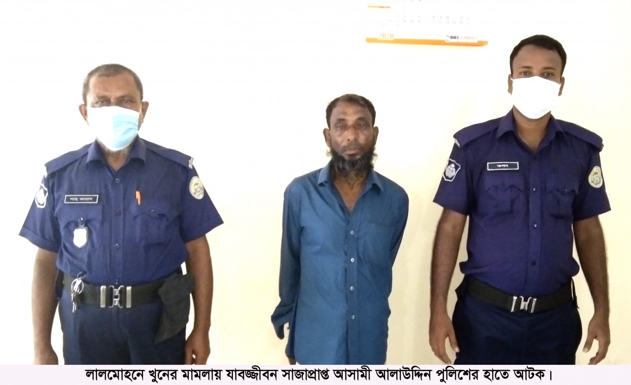 লালমোহন প্রতিনিধি ।।ভোলার লালমোহনে খুনের মামলায় যাবজ্জীবন সাজাপ্রাপ্ত আসামী মো. আলাউদ্দিন (৪৫) কে আটক করেছে পুলিশ। শনিবার রাতে গোপন সংবাদের ভিত্তিতে ওসি মাকসুদুর রহমান মুরাদ ও ওসি তদন্ত বশির আলমের নেতৃত্বে উপজেলার ধলিগৌরনগর ইউনিয়নের কালামউল্যাহ এলাকা থেকে তাকে আটক করা হয়। আটক আলাউদ্দিন ওই এলাকার মৃত সৈয়দ আহমদের ছেলে।