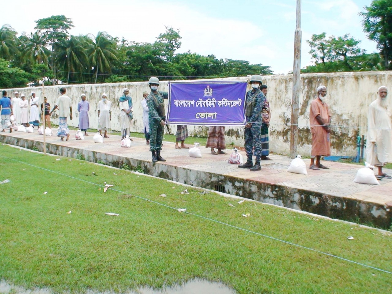 ভোলা নৌবাহিনীর লেফটেন্যান্ট কমান্ডার মাজহারুল ইসলাম জানান, করোনা মহামারী শুরুর পর থেকেই দেশের সংকটময় মূহুর্তে জনসাধারনণের সেবায় এগিয়ে আসে বাংলাদেশ নৌবাহিনী। এরই ধারাবাহিকতায় নৌবাহিনীর নিজেস্ব অর্থায়নে ভোলায় করোনায় সংকটে থাকা ও বন্যায় ক্ষতিগ্রস্থ অসহায় দরিদ্র মানুষের সাহায্যার্থে খাদ্য সামগ্রীসহ বিভিন্ন উপকরণ বিতরণ করা হয়েছে । পরিস্থিতি উন্নতি না হওয়া পর্যন্ত নৌবাহিনীর এ কার্যক্রম অব্যাহত থাকবে বলে জানান তিনি ।