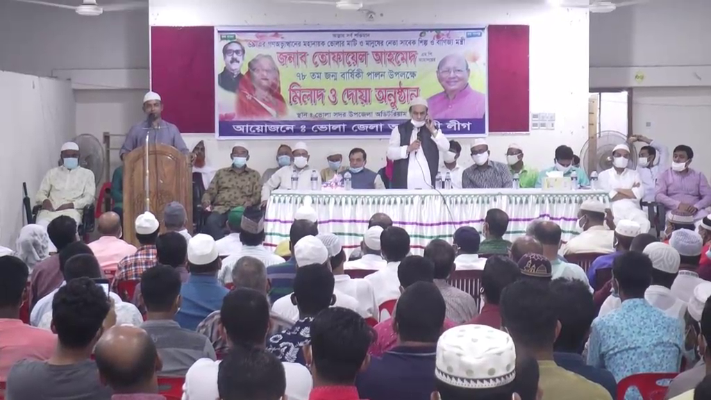 বাংলার কণ্ঠ প্রতিবেদক: ভোলায় আলোচনা ও দোয়া মোনাজাতের মধ্য দিয়ে মুক্তিযুদ্ধের অন্যতম সংগঠক আওয়ামী লীগের প্রবীণ নেতা সাবেক মন্ত্রী তোফায়েল আহমেদের ৭৮তম জন্মদিন পালিত হয়েছে। এ উপলক্ষে আজ বৃহস্পতিবার ভোলা সদর উপজেলা হল রুমে জেলা আওয়ামী লীগ আয়োজিত অনুষ্ঠানে দুর্যোগ পূর্ণ আবাহাওয়া উপেক্ষা করে আওয়ামী লীগ ও বিভিন্ন অংগ সংগঠনের নেতাকর্মীরা অংশ নিয়েছেন।