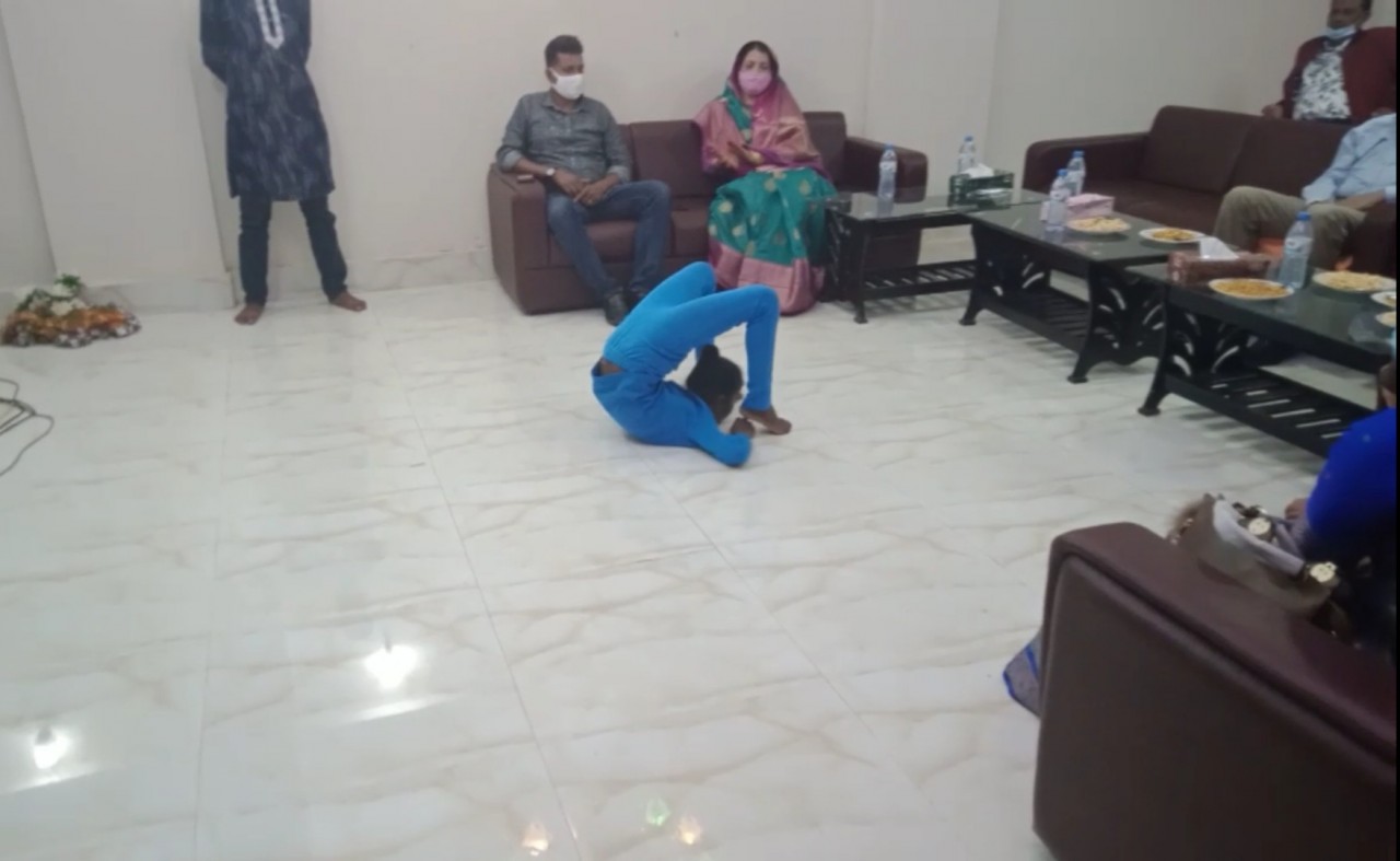 বুধবার রাতে ডাকবাংলো হলরুমে বিভাগীয় কমিশনার ও জেলা প্রশাসকের সামনে এক মনোজ্ঞ সাংস্কৃতিক অনুষ্ঠানে অ্যাক্রোবেটিক প্রদর্শন করেন হতদরিদ্র ছাত্রী সুমাইয়া। এতে খুশি হয়ে বিভাগীয় কমিশনার ড. অমিতাভ সরকার একটি ঘর ও জেলা প্রশাসক মাসুদ আলম ছিদ্দিক ২০ হাজার টাকা পুরুস্কার ঘোষনা করেন। এদিকে সাংস্কৃতি অনুষ্ঠানে অ্যাক্রোবেটিক প্রদর্শনে কোন পোশাক ছিল না হতদরিদ্র সুমাইয়ার। পরে ভারপ্রাপ্ত ইউএনওর সহযোগিতায় পোশাকের ব্যবস্থা হলে অ্যাক্রোবেটিক শো দেখান ওই ছাত্রী।