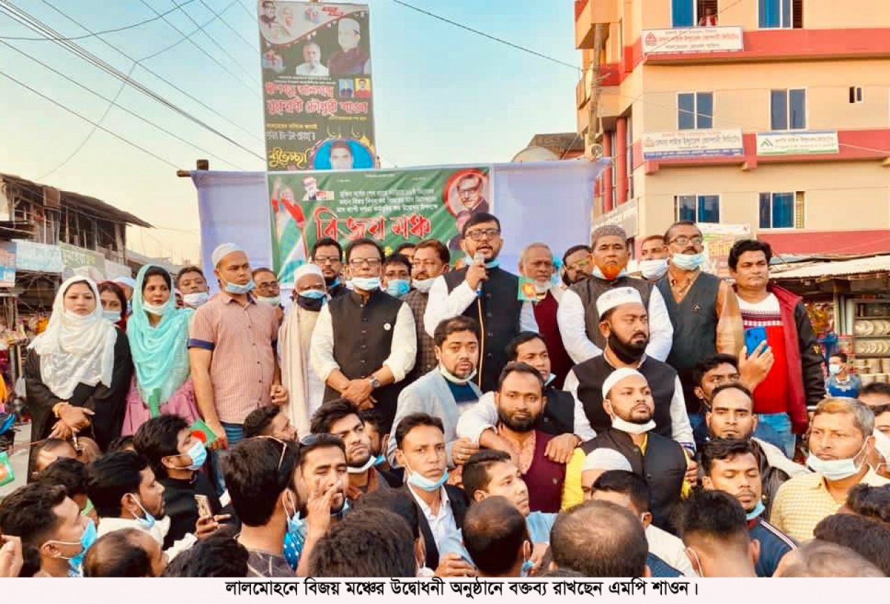 লালমোহন প্রতিনিধি : ভোলা-৩ আসনের এমপি নূরুন্নবী চৌধুরী শাওন বলেছেন, বঙ্গবন্ধুর জন্ম না হলে আমরা স্বাধীন সার্বভৌম বাংলাদেশ পেতাম না। বঙ্গবন্ধু শেখ মুজিবুর রহমানের জন্যই আমরা একটি নিজস্ব মানচিত্র পেয়েছি, পেয়েছি একটি স্বাধীন রাষ্ট্র। রবিবার বিকালে লালমোহন পৌর শহরের চৌরাস্তার মোড়ে পৌরসভা আওয়ামীলীগ ও অঙ্গসহযোগী সংগঠন আয়োজিত মাস ব্যাপী বিজয় দিবসের কর্মসূচির অংশ হিসাবে বিজয় মঞ্চের উদ্বোধন অনুষ্ঠানে প্রধান অতিথির বক্তব্যে এমপি শাওন এসব কথা বলেন।