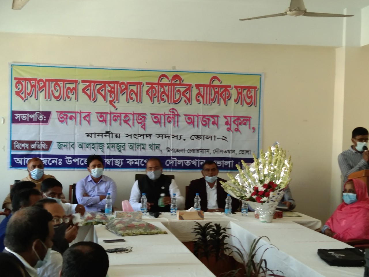 দৌলতখান প্রতিনিধি : ভোলা-২ (দৌলতখান-বোরহানউদ্দিন) আসনের সংসদ সদস্য আলী আজম মুকুল বলেছেন, শেখ হাসিনা সরকার স্বাস্থ্য বান্ধব সরকার। প্রধানমন্ত্রী শেখ হাসিনা স্বাস্থ্যসেবা নিশ্চিত করে জনগণের দোরগোড়ায় পৌঁছে দিয়েছেন। সোমবার দৌলতখান হাসপাতাল ব্যবস্থাপনা কমিটির মাসিক সভায় প্রধান অতিথির বক্তব্যে তিনি এসব কথা বলেন। এর আগে হাসপাতালে কর্তব্যরত চিকিৎসকরা এমপি মুকুলকে ফুলের শুভেচ্ছা জানান। পরে স্বাস্থ্য সহকারীরা ক্রেষ্ট দিয়ে সম্মাননা করেন। এসময় বক্তব্য রাখেন, উপজেলা চেয়ারম্যান মনজুর আলম খান, নির্বাহী কর্মকর্তা কাওছার হোসেন, উপজেলা স্বাস্থ্য ও পরিবার পরিকল্পনা কর্মকর্তা ডাঃ আনিসুর রহমান।