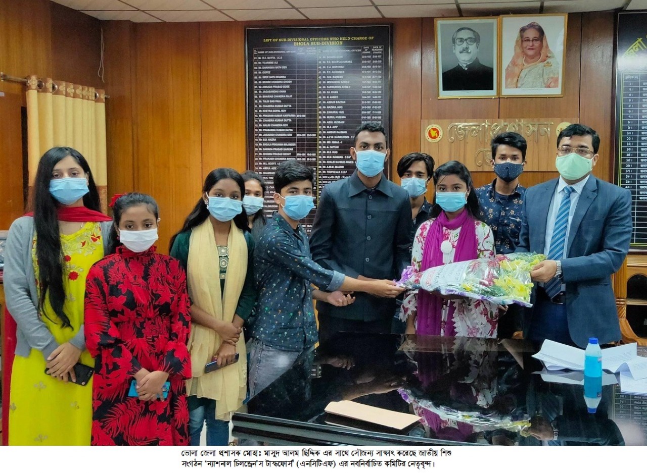এসময় জেলা প্রশাসক মোহাঃ মাসুদ আলম ছিদ্দিক এনসিটিএফ’র নবনির্বাচিত কমিটিকে অভিনন্দন জানিয়ে বলেন, ‘ন্যাশনাল চিলন্ড্রেন’স টাস্কফোর্স’ শিশুদের সমস্যা ও সম্ভাবনা নিয়ে কাজ করে আসছে। তোমরা যারা নির্বাচিত হয়েছে তারা সমাজের সুবিধা বঞ্চিত, নির্যাতিত, অবহেলিত শিশুদের নিয়ে কাজ করবে। কোন কাজে যদি আমাকে প্রয়োজন হয় তাহলে সংকোচিত না হয়ে জানাবে। আমি তোমাদের ভালো কাজে সবসময় পাশে থাকবো।