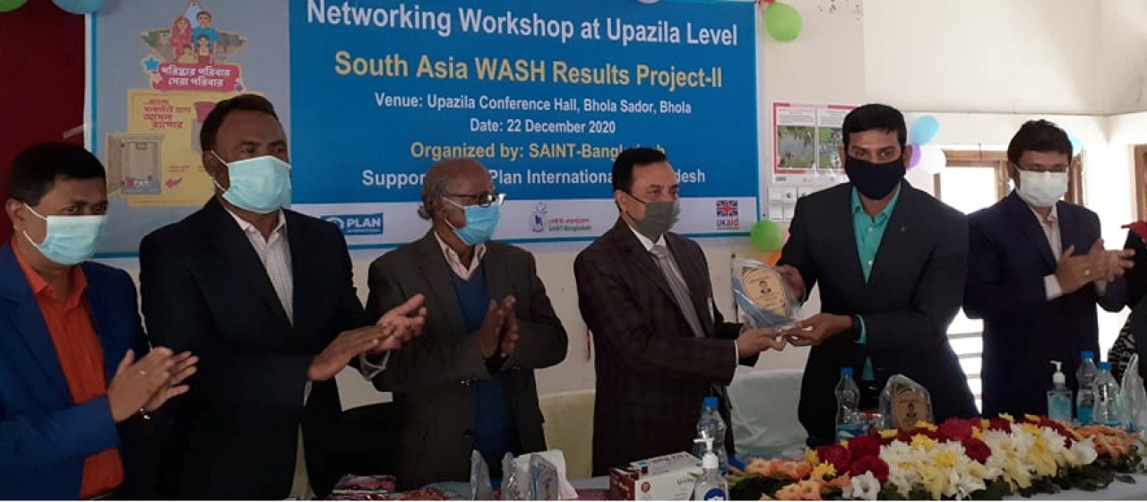 বাংলার কণ্ঠ প্রতিবেদক : ভোলায় তিন বছরের ওয়াস কার্যক্রমে সফলতার জন্য সম্মাননা স্মারক পেলেন সদর উপজেলা চেয়ারম্যান , উপজেলা নির্বাহী অফিসারসহ ১৩ ইউপি চেয়ারম্যান। প্লান ইন্টারন্যাশনাল ও সেইন্ট বাংলাদেশ এর মূল্যায়নে এ সম্মাননা স্মারক দেয়া হয়। । মঙ্গলবার সাউথ এশিয়া ওয়াশ রেজাল্টস প্রজেক্টে-২ এর আয়োজনে নেটওয়াকিং কর্মশালা শেষে এই স্মারক তুলে দেয়া হয়েছে। হাত ধোয়া ও স্যানিটেশন কার্যক্রম প্রজেক্ট ২০১৭ সালে শুরু হলেও করোনা ভাইরাসকালিন সময়ে বার বার হাতধোয়া বিষয়টি কার্যকরি পদক্ষেপ হয়ে ওঠে। যার গুরুত্ব অপরিসীম। স্মারক সম্মাননা প্রাপ্তরা হলেন, জেলা সদর উপজেলা চেয়ারম্যান মোঃ মোশারফ হোসেন, উপজেলা নির্বাহী অফিসার মোঃ মিজানুর রহমান, উপজেলা ভাইস চেয়ারম্যান মোঃ ইউনুছ, জনস্বাস্থ্য বিভাগের নির্বাহী প্রকৌশলী মোহাম্মদ মাহমুদ খান, ওই দফতরের উপজেলা প্রকৌশলী ফিরোজ আলম, ইউপি চেয়ারম্যান বশির আহম্মেদ, ইউপি চেয়ারম্যান মোঃ জসিম উদ্দিন, ইউপি চেয়ারম্যান লিয়াকত হোসেন মনসুর, ইউপি চেয়ারম্যান মিজানুর রহমান খান, ইউপি চেয়ারম্যান হাসনাইন আহমেদ, ইউপি চেয়ারম্যান আব্দুস সালাম মাস্টার, ইউপি চেয়ারম্যান তাজুল ইসলাম, ইউপি চেয়ারম্যান এমদাত হোসেন কবির, ইউপি চেয়ারম্যান ইয়ানুর রহমান, ইউপি চেয়ারম্যান ইফতারুল আলম , মাঠকর্মী সাথী আক্তার, মতিউর রহমান । এ সময় উপস্থিত থাকার পাশপাশি বক্তব্য রাখেন প্রেসক্লাব সভাপতি এম. হাবিবুর রহমান, প্রেসক্লাব সম্পাদক অমিতাভ অপু, প্লান ইন্টারন্যাশনালের প্রজেক্ট ম্যানেজার হেমন্ত কুমার মল্লিক, সেইন্ট বাংলাদেশের প্রজেক্ট কো-অডিনেটর আহসানউল্লাহ, সাইথ এশিয়া ওয়াশ রেজাল্টস প্রজেক্ট-২ এর প্রকল্প ব্যবস্থাপক মোঃ বেলায়েত হোসেন। অনুষ্ঠানের সঞ্চালনায় ছিলেন, প্রকল্পের উপজেলা কো-অডিনেটর মোঃ হাছানুজ্জামান । এসময় বক্তারা বলেন, জনগনের নিরাপদ পানির ব্যবহার বৃদ্ধি,স্বাস্থ্যসম্মত পায়খানা ব্যবহার নিশ্চিত করার পাশাপাশি হাত ধোয়ার অভ্যাস চর্চা বৃদ্ধি করছে। গভার্মেন্ট সিস্টেম-ইউনিয়ন পরিষদ তার এলাকার ওয়াশ কার্যক্রম সমন্বয় করে আসছে দীর্ঘদিন ধরে। এর মাধ্যমে মানুষের অভ্যাস ও আচারন পরিবর্তন হচ্ছে। পাশাপাশি পথ নাটক,উঠান সভা, স্কুল ক্যাম্পেইন এর মাধ্যমে গ্রামের সকল মানুষকে সচেতন করা হয়েছে। যাতে নিরাপদ থাকে সবাই।
