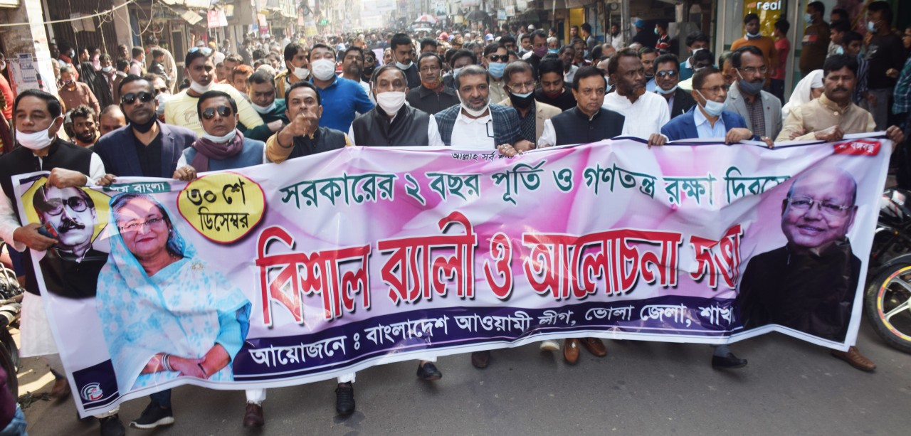 ভোলায় সরকারের ২ বছর পূর্তি ও গণতন্ত্র রক্ষা দিবসে আ’লীগের আলোচনা ও বিজয় র্যালী উদ্বোধন