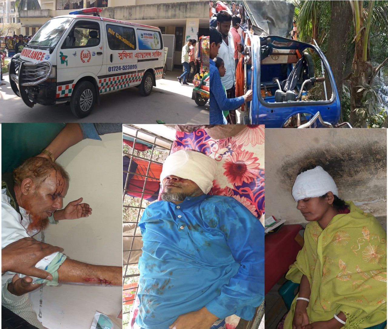 তজুমদ্দিন প্রতিনিধি : ভোলার তজুমদ্দিনের দক্ষিণ খাশেরহাট টু মুচিবাড়ী সড়কের শাহ আলম মডেল কলেজ এলাকায় এ্যাম্বুলেন্সের সাথে অটো বোরাকের মুখোমুখি সংঘর্ষ হয়েছে। এ ঘটনায় গুরুতর আহত তিনজনকে তজুমদ্দিন হাসপাতালে ভর্তি করা হয়েছে। আশংকাজনক অবস্থায় একজনকে ভোলা সদরে রেফার করা হয়েছে। দুর্ঘটনা কবলিত এ্যাম্বুলেন্সটি পুলিশ হেফাজতে আছে। এ্যাম্বুলেন্স ড্রাইভার মোঃ জুয়েল জানান, রাস্তার মোড়ে মুখোমুখি সংঘর্ষে এই দুর্ঘটনা ঘটে। উপজেলা স্বাস্থ্য ও পঃ পঃ কর্মকর্তা ডাঃ কবির সোহেল জানান, দুর্ঘটনায় গুরুতর আহত জসিমউদ্দিন (৫৫), হাবিবুল্লাহ (৬০), রিনা রানী দাস (৩৫) এর মাথায় আঘাত পেয়েছে। তজুমদ্দিন অফিসার ইন-চার্জ এস,এম, জিয়াউল হক জানান, আহতদের চিকিৎসার ব্যবস্থা নেয়া হয়েছে। এ্যাম্বুলেন্সটি পুলিশ হেফাজতে আছে।