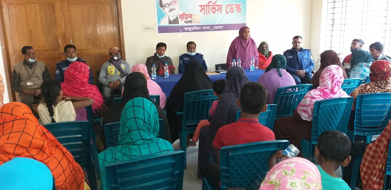 তজুমদ্দিন প্রতিনিধি : ভোলার তজুমদ্দিন উপজেলায় থানা পুলিশ কর্তৃক মা-শিশু ও প্রতিবন্ধী সমাবেশ অনুষ্ঠিত হয়েছে। সোমবার সকালে থানা কমপ্লেক্সে এই সমাবেশের আয়োজন করা হয়। থানা অফিসার ইন-চার্জ এস এম জিয়াউল হকের সভাপতিত্বে অনুষ্ঠানে অতিথি হিসেবে বক্তব্য রাখেন,উপজেলা ভাইস চেয়ারম্যান ফাতেমা বেগম সাজু, শিশু ও মহিলা বিষয়ক কর্মকর্তা রুপ কুমার পাল, সমাজ সেবা অফিসার মাসুম বিল্লাহ, উপজেলা আওয়ামীলীগ সাংগঠনিক সম্পাদক শহিদুল্যাহ কিরন, প্রেসক্লাব সভাপতি মোঃ রফিক সাদী, এনজিও ব্রাক কর্মকর্তা ফখরুদ্দিন, সুশীলন কর্মকর্তা ওবায়দুল্লাহ জুয়েল, তথ্য সেবা কেন্দ্রের তথ্য আপা আখী বেগম প্রমুখ।