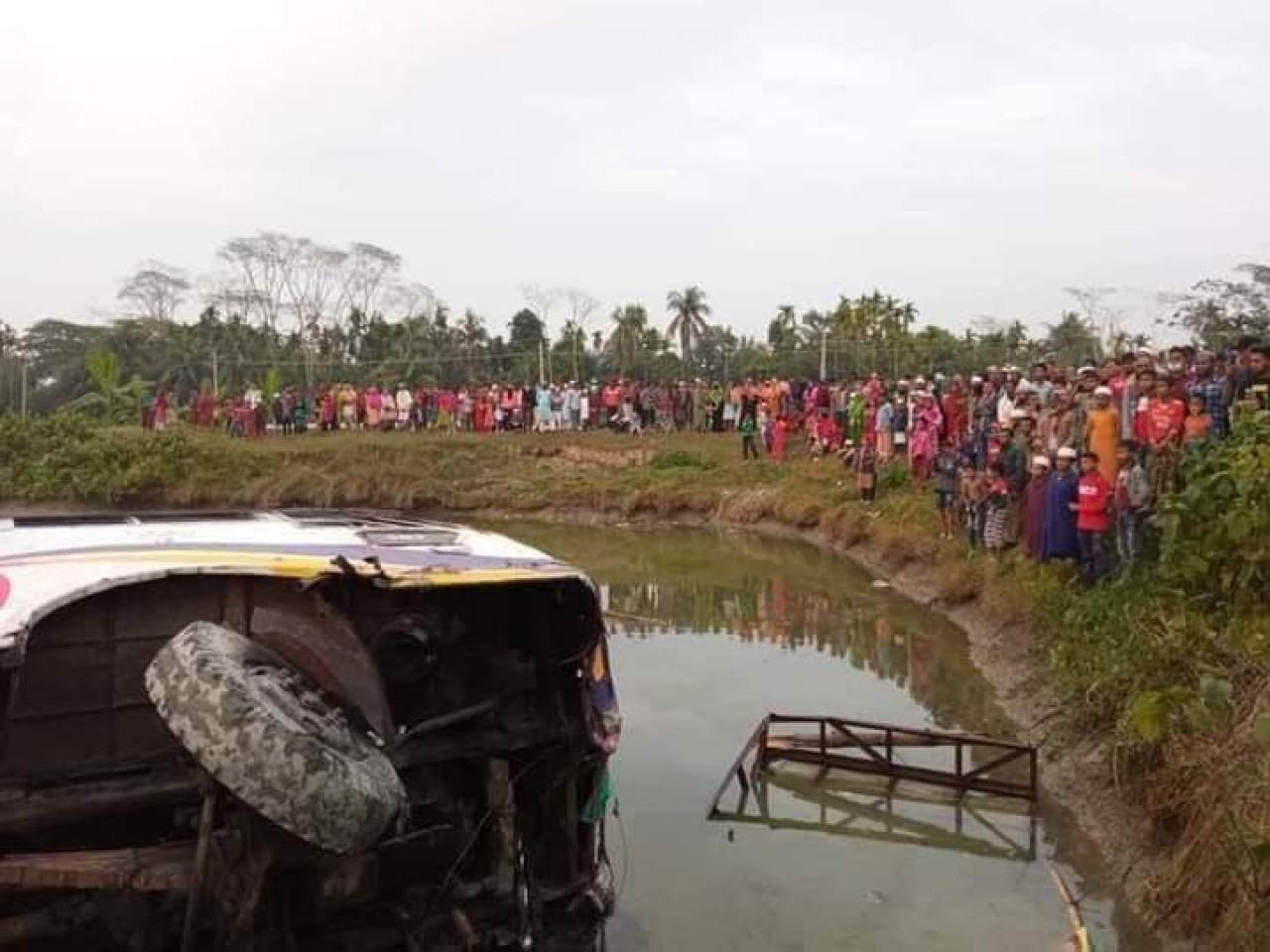 স্থানীয়রা জানান, রবিবার বিকেলে সাড়ে ৫ টার দিকে ভোলা থেকে চরফ্যাশন গামী যাত্রীবাহী ওই বসটি যাত্রী নিয়ে আসছিল। বোরহানউদ্দিন উপজেলার হেলিপ্যাড এলাকায় আসলে নিয়ন্ত্রন হারিয়ে রাস্তার পাশে পুকুরে পড়ে যায়। এতে ২৫ জন যাত্রী আহত হয়। স্থানীয়রা দ্রæত আহত যাত্রীদের উদ্ধার করে ভোলা ও বোরহানউদ্দিন উপজেলা স্বাস্থ্য কমপ্লেক্সে ভর্তি করেন।