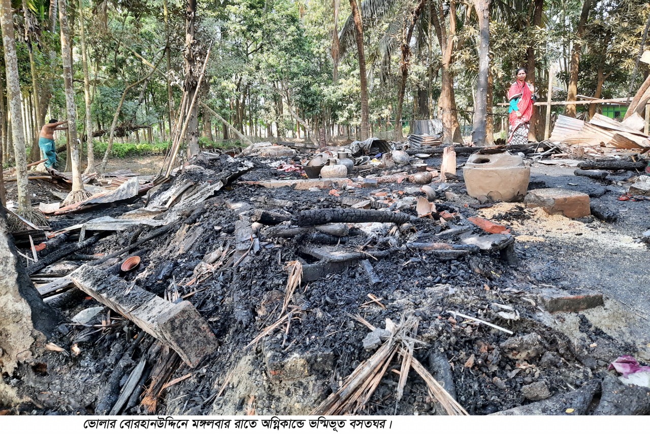 বোরহানউদ্দিন প্রতিনিধি \ ভোলার বোরহানউদ্দিন উপজেলার কুতুবা ইউনিয়নের চার নাম্বার ওয়ার্ডের ছোট মানিকা গ্রামের খুচড়া পান বিক্রেতা উজ্জল রায়ের ভাড়া বসতঘর পুড়িয়ে ভস্মিভূত করে তাঁকে উচ্ছেদের অভিযোগ পাওয়া গেছে ঘরমালিক লিটন চন্দ্র দাসের বিরুদ্ধে। বুধবার দুপুরে পোড়া ভিটায় দাঁড়িয়ে উজ্জল রায় ও তাঁর স্বজনরা ওই অভিযোগ করেন। জানা যায়, মঙ্গলবার রাত ৮ টার দিকে উজ্জল রায়ের ভাড়া বসত ঘরে আগুন লাগে। ওই সময় ঘরে কেউ ছিলনা। উজ্জল রায়ের স্ত্রী আঁখি রাণী, মেয়ে পুনম রায় ও ছেলে প্রিতম রায় ১ কিলোমিটার দূরবর্তী কীর্ত্তনীয় বাড়িতে স্বরসতি পুঁজার অনুষ্ঠানে ছিল। উজ্জল রায় পৌর শহরের পশ্চিম বাজারে পান বিক্রি করছিল। প্রত্যক্ষদর্শী পাশের ঘরের গৃহবধূ পারভিন আক্তার, হাসনা বেগম,ইয়ানুর বেগম জানান, তাঁরা রাত ৮ টার দিকে উজ্জল রায়ের বসত ঘরের উত্তর-পশ্চিম কোন দিয়ে প্রথমে আগুন দেখতে পান। দশ মিনিটের মধ্যে ওই আগুন সারা ঘরে ছড়িয়ে পড়ে। তারা মোবাইল ফোনে ওই পরিবারের সদস্যদের জানানোর চেষ্টার পাশাপাশি আগুন আগুন বলে চিৎকার করতে থাকে। এক সময় ফায়ার সার্ভিস আসে, তখন পুড়ে সব শেষ। তাঁরা আরো জানান, সকাল ১১ টার দিকে ওই ঘরে সাগু রান্না করা হয়। এছাড়া দুপুরে আর রান্না হয়নি। ওই ঘরে এখনও বিদ্যুৎ সংযোগ আনেনি। কীভাবে আগুন লাগলো এটা একটা রহস্য। ঘরের বাসিন্দা উজ্জল রায় জানান, তাঁরা পৌর শহর ব্যবসায়ী সমিতির উপদেষ্টা লিটন চন্দ্র দাসের মালিকানাধীন ওই ঘরে গত ৮-৯ বছর ধরে পাহারাদার হিসেবে বসবাস করে আসছিলেন। গত ৬-৭ মাস ধরে ১ হাজার টাকা মাসিক ভাড়ায় থাকছেন। ২ মাসের ভাড়াও বাকি আছে। লিটন বিভিন্ন সময়ে ঘর ছেড়ে যেতে বলছিলেন। নদী ভাঙ্গনে ঘর-বাড়ি বিলীন হয়ে যাবার পর কোথাও যাবার উপায় ছিলনা। এছাড়া দ্বাদশ শ্রেণিতে পড়ে–য়া একমাত্র মেয়ে পুনমকে বিয়ে দেয়া পর্যন্ত সময়টুকু চেয়েছিলাম। কিন্তু সে কিছুতেই রাজি হচ্ছিল না; বরং চলে যেতে চাপ, হুমকি দিচ্ছিল। উজ্জল রায় দাবি করেন তাঁকে ঘর ছাড়া করতেই লিটন দাস এ অগ্নিকান্ডের ঘটনা ঘটিয়েছে। লিটন চন্দ্র দাস এ অভিযোগ অস্বীকার করে বলেন, প্রথম থেকেই উজ্জল রায় ৫ শত টাকা মাসিক ভাড়ায় ওই ঘরে থাকে। পরবর্তীতে ১ হাজার টাকা ভাড়া চুক্তি করে। যা একমাস আগেই শেষ হয়ে গেছে। আমার ঘরে আমি আগুন দিব কেন! চুক্তি শেষ, তাঁরতো এমনিতেই নেমে যাবার কথা।