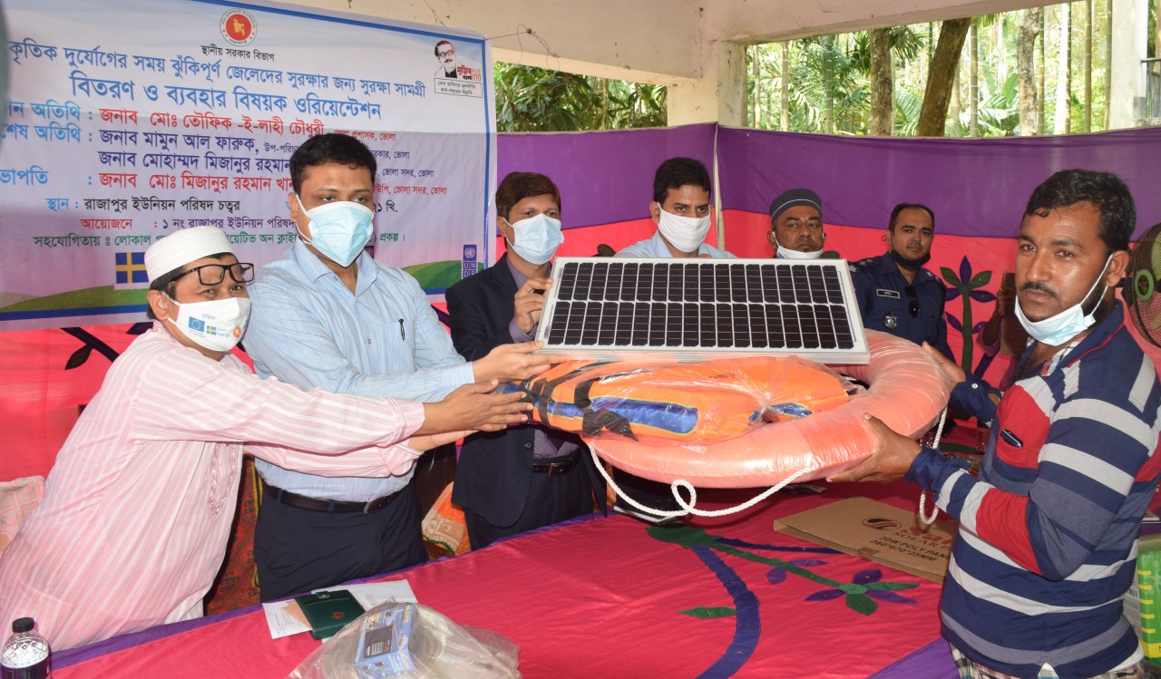 লোকাল গভর্নমেন্ট ইনিশিয়েটিভ অন ক্লাইমেট চেঞ্জ (লজিক) প্রকল্প সহযোগিতায় স্থানীয় সরকার বিভাগের আয়োজনে প্রতিটি জেলে নৌকার জেলেদের সুরক্ষায় ব্যবহারের জন্য ১০ টি লাইফ জ্যাকেট,৫ টি বয়া,১ টি হেভি ডিউটি টর্চ লাইট, ১ টি সোলার প্যানেল,১ টি রেডিও,১ পানির ফিল্টার বিতরন করা হয়।