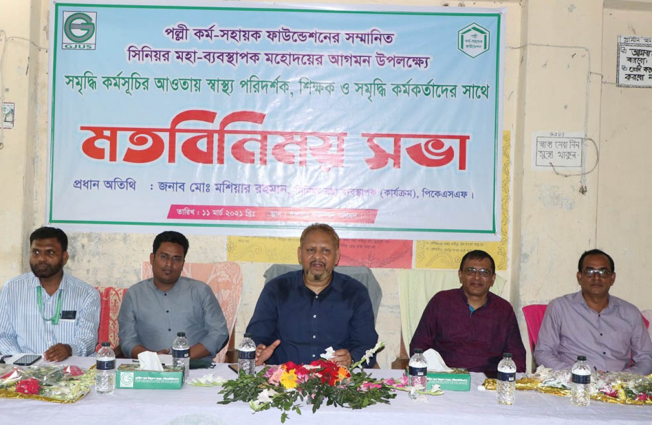 বাংলার কণ্ঠ প্রতিবেদক \ ভোলার বোরহানউদ্দিন উপজেলার গঙ্গাপুর ইউনিয়নে পল্লী কর্ম-সহায়ক ফাউন্ডেশনের সমৃদ্ধি কর্মসুচির স্বাস্থ্য সেবিকা ও শিক্ষকদের সাথে মতবিনিময় সভা অনুষ্ঠিত হয়েছে। প্রধান অতিথি ছিলেন পল্লী কর্ম-সহায়ক ফাউন্ডেশনের সিনিয়র মহা-ব্যাবস্থাপক মোঃ মশিয়ার রহমান। পিকেএসএফ এর সহযোগিতায় গ্রামীন জন উন্নয়ন সংস্থা গঙ্গাপুর ইউনিয়ন পরিষদ হলরুমে এ মতবিনিময় সভার আয়োজন করে।