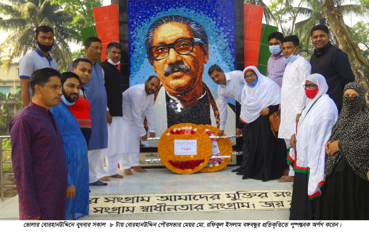 বোরহানউদ্দিন প্রতিনিধি \ ভোলার বোরহানউদ্দিনে নানা অনুষ্ঠানের মধ্য দিয়ে জাতির পিতা বঙ্গবন্ধু শেখ মুজিবুর রহমানের জন্মশতবার্ষিকী উদ্যাপিত হয়েছে। বুধবার সকাল ৮ টায় যথাক্রমে উপজেলা চেয়ারম্যান আবুল কালাম আজাদ, পৌর মেয়র মো. রফিকুল ইসলাম, উপজেলা নির্বাহী অফিসার মো. সাইফুর রহমান, উপজেলা আ’লীগ সভাপতি মো. জসিমউদ্দিন হায়দার পুষ্পস্তবক অর্পণ করেন।