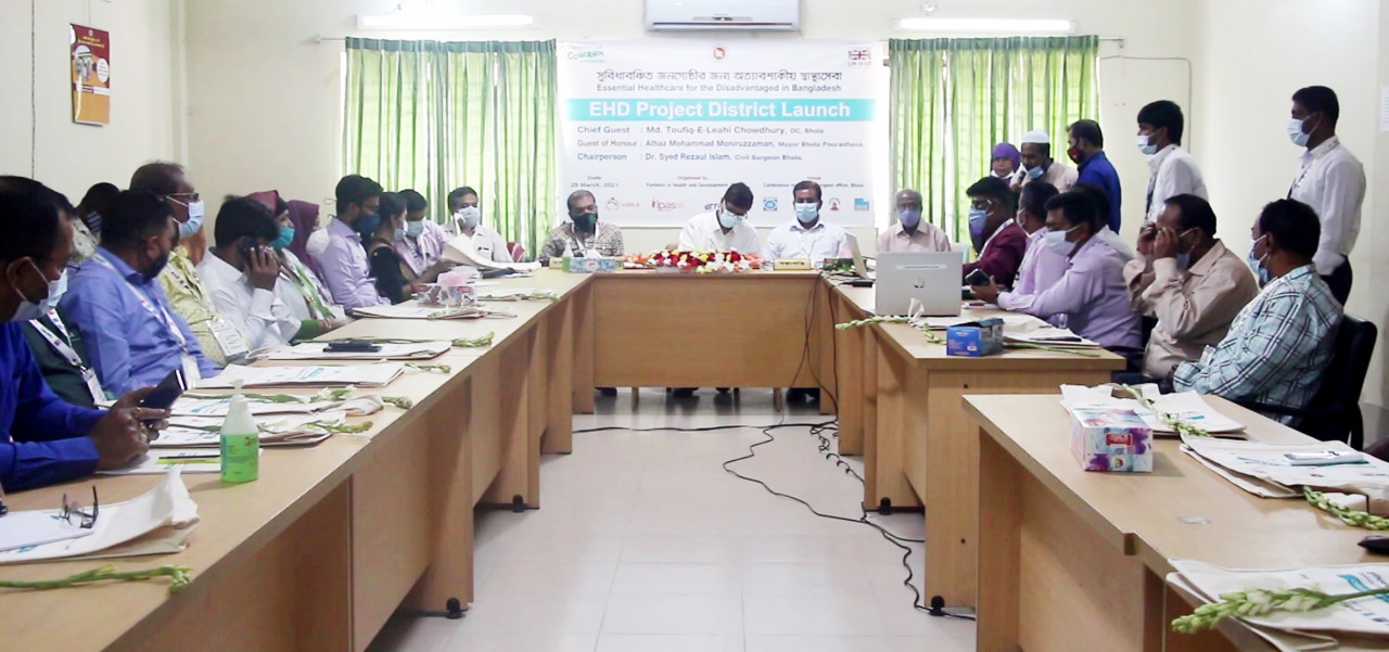 ইউকেএইড-এর আর্থিক সহযোগিতা এবং কনসার্ন ওয়ার্ল্ডওয়াইড-এর নেতৃত্বে ‘পার্টনার্স ইন হেলথ এন্ড ডেভেলপমেন্ট-পিএইচডি’ নামের সংস্থাটি ভোলা পৌর সভা,চরফ্যাশন উপজেলা ও মনপুরা উপজেলায় এই প্রকল্পটি বাস্তবায়ন করছে। উপকূলবর্তী জনগোষ্ঠীর স্বাস্থ্য সেবার সংকট মোকাবেলায় বিভিন্ন করণীয় ও পরিকল্পনা তুলে ধরেন,যাতে এই অঞ্চলের জনগোষ্ঠী নির্বিঘেœ স্বাস্থ্যসেবা পেতে পারে।