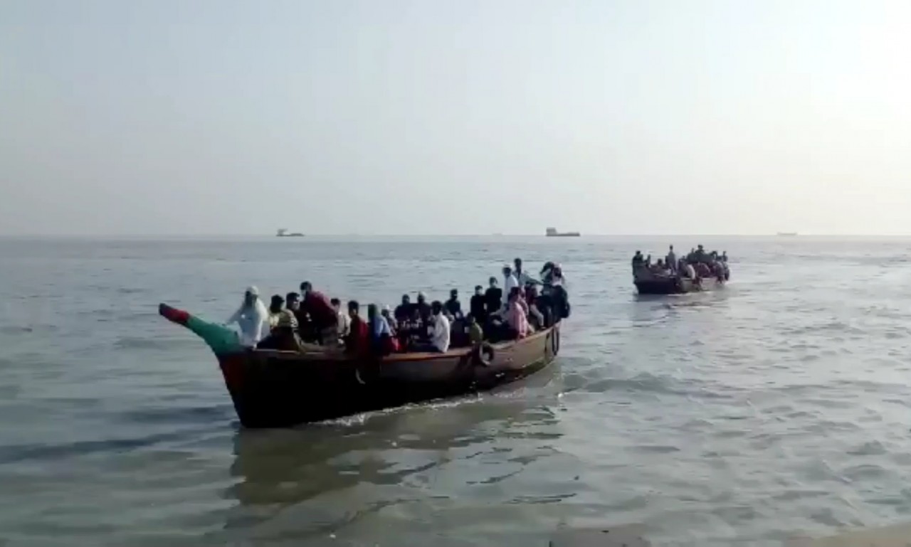 অচিন্ত্য মজুমদার \ করানো ভাইরাস সংক্রমন প্রতিরোধে দেশব্যাপী লকডাউন ঘাষোণা করা হলেও লকডাউন অমান্য করে ভোলা-ল²ীপুর রুটে যাত্রীবাহী ট্রলার চলাচল করছে। সোমবার সকালে ল²ীপুর মজুচৌধুরীর ঘাট থেকে বিভিন্ন জেলার শত শত মানুষ গাদাগাদি করে ট্রলারে উত্তাল মেঘনা পাড়ি দিয়ে ভোলার ইলিশা ঘাট এলাকায় পৌছেছে। শুধু ট্রলারই নয় সরকারি নৌ-যান সি-ট্রাক ল²ীপুর মৌজুচৌধুরী ঘাট থেকে যাত্রী নিয়ে সকাল সাড়ে ৬টায় ভোলা ইলিশা ঘাটে স্বাস্থবিধি না মেনে শত শত যাত্রী আসে। আবার ইলিশা থেকে বাস, সিএনজি ও অটোরিক্সায় গাদাগাদি করে ওইসব যাত্রীরা বিভিন্ন গন্তব্য যেতে দেখা যায়। এতে করে করোনা সংক্রামন ছড়িয়ে পড়ার আশঙ্কা দেখা দিয়েছে । এদিকে প্রশাসনের পক্ষ থেকে নৌ-পুলিশ সকালে অভিযান চালিয়ে তিন ট্রলার জব্দ করেছে। এসময় জব্দ করা ট্রলারের ৩ চালকসহ ৫ জনকে আটক করা হয় বলে জানিয়েছেন ভোলা নৌ থানার ভারপ্রাপ্ত কর্মকর্তা (ওসি) সুজন কুমার পাল। আটককৃতরা হলেন, মোঃ রিয়াজুল ইসলাম (১৯), মো: মজনু (২৬), মো: রিয়াজ (২০), সেলিম (৪০), মো: বিল্লাল (৩৫) । তাদেরকে জিজ্ঞাসাবাদ করলে জানা যায়, তারা সবাই ল²ীপুর জেলার মজুচৌধুরী ঘাট এলাকার বাসিন্দা। আটককৃতদের ভ্রাম্যমান আদালতের মাধ্যমে ৫শত টাকা করে মোট ২ হাজার ৫ শত টাকা জরিমানা করা হয়। এছাড়া জব্দকৃত ট্রলার শর্তসাপেক্ষে ট্রলার মালিকদের জিম্মায় লকডাউনের সময়ে চলাচল করা হবে না মর্মে ছেড়ে দেয়া হয়।