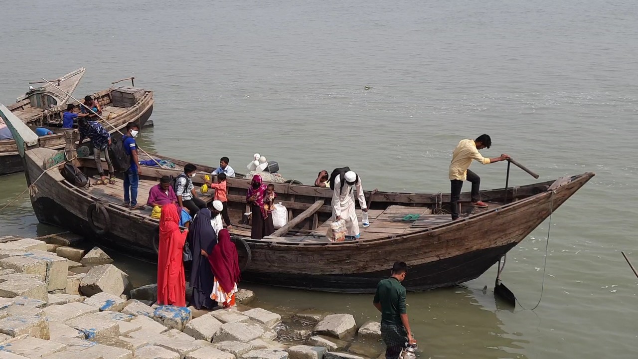 অচিন্ত্য মজুমদার : করোনা সংক্রমণ রোধে কঠোর বিধি নিষেধের দ্বিতীয় দিনেও লকডাউন অমান্য করে ভোলা-লক্ষীপুর রুটে ট্রলার ও স্পিডবোট চলছে। মঙ্গলবার সকালে ইলিশা ফেরি ঘাট, লঞ্চঘাট ও মাছঘাট এলাকা থেকে এসব ট্রলার এবং স্পিডবোট স্বাস্থবিধি না মেনেই যাত্রী পারাপার শুরু করে। আবার লক্ষীপুর মতির হাট ও মজুচৌধুরীর হাট এলাকা থেকে একই ভাবে যাত্রী পারাপার করা হচ্ছে। সরকারি নিষেধাজ্ঞায় লঞ্চ-সি-ট্রাক বন্ধ থাকায় এসব অনুমোদনহীন নৌযান যাত্রী পারাপার করছে। তবে ঘাটে নৌ-পুলিশ ও ইলিশা ফারির পুলিশ সদস্যদের দেখা গেলেও তারা নিরব দর্শকের ভ‚মিকা পালন করছেন। সরেজমিনে ভোলার ইলিশা ঘাট এলাকায় সাধারণ যাত্রীদের সাথে কথা হয়। তারা বলছেন জরুরী প্রয়োজনে কেউ কর্মস্থলে আবার কেউ কেউ নিজ এলাকায় ফিরছে। দৌলতখান উপজেলা থেকে আসা যাত্রী ইসহাক আলী ও জয়নাল মিয়া বলেন, তারা চাচাতো ভাইয়ের মৃত্যুর খবর শুনে দেখতে এসেছিলেন। এখন নোয়াখালীর মাইজদী এলাকার নিজ বাড়িতে ফিরে যাচ্ছেন। তবে লঞ্চ সিট্রাক না থাকায় বাধ্য হয়ে জীবনের ঝুঁকি নিয়ে ট্রলারে উত্তাল মেঘনা নদী পাড়ি দিচ্ছেন।