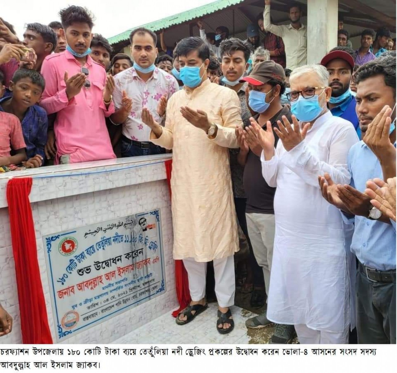 এআর সোহেব চৌধুরী ,চরফ্যাশন \ ভোলার চরফ্যাসন উপজেলার বিচ্ছিন্ন চর মুজিব নগর,কুকরি-মুকরি,নজরুল নগর ও চর কলমী ইউনিয়নে তেঁতুলিয়া নদীর ভাঙ্গণ ও বন্যা নীয়ন্ত্রণে ১১.১ কিলোমিটার ড্রেজিং প্রকল্পের কাজ শুভ উদ্বোধন করেছেন যুব ও ক্রীড়া মন্ত্রণালয় সম্পর্কিত স্থায়ি কমিটির সভাপতি ভোলা-৪আসনের সংসদ সদস্য আবদুল্লাহ আল ইসলাম জ্যাকব। মঙ্গলবার (৪মে) বেলা ১২টায় বিচ্ছিন্ন দ্বীপ মুজিব নগর বাংলাবাজারে এ কাজের উদ্বোধন করেন তিনি। এসময় উপস্থিত ছিলেন,উপজেলা চেয়ারম্যান জয়নাল আবেদিন আখন,উপজেলা আওয়ামীলীগের সম্পাদক নুরুল ইসলাম,পৌর মেয়র এসএম মোরশেদ,পানি উন্নয়ন বোর্ড ভোলা-২এর নির্বাহী প্রকৌশলী হাসান মাহমুদ ও উপ-বিভাগীয় প্রকৌশলী মিজানুর রহমান প্রমুখ। এসময় এমপি জ্যাকব বলেন, চরফ্যাশনে নদী ভাঙ্গণরোধে প্রধানমন্ত্রী শেখ হাসিনার উন্নয়নের মাধ্যমে ৩০কিলোমিটার নদী তীর সিসি বøক/জিও ব্যাগ স্থাপন সহ প্রায় ২৫ কিলোমিটার এলাকা বøক দিয়ে স্থায়ী বেড়িবাধঁ নির্মানে শতশত কোটি টাকার কাজ করা হয়েছে। উপ-বিভাগীয় প্রকৌশলী মিজানুর রহমান জানান, ১৮০কোটি টাকা ব্যয়ে বকসী লঞ্চঘাট থেকে বাবুরহাট লঞ্চঘাট এলাকা ড্রেজিং ও চর কুকরি-মুকরি দ্বীপ বন্যা নীয়ন্ত্রণ শির্ষক প্রকল্পের আওতায় মুজিব নগরের পুটিয়া থেকে দক্ষিণ পর্যন্ত ১১ কিলোমিটার নদী খননে ১৮টি ড্রেজিং এর মাধ্যমে এ কার্যক্রম চলমান রয়েছে।
