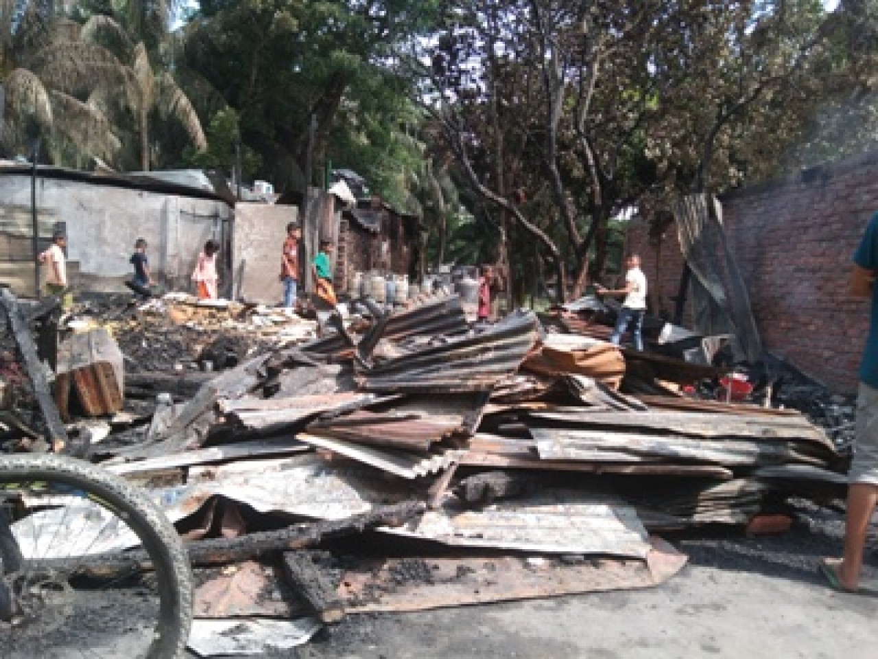 প্রত্যক্ষদর্শীরা জানান, প্রথমে অলিউল্যাহ্র মুদি দোকানে আগুন জ¦লতে দেখেন। স্থানীয়রা আগুন নিভাতে প্রানান্ত চেষ্টা করে ব্যর্থ হন। বার বার ফোন করেও ঘটনাস্থল থেকে দুই কিলোমিটার দুরে অবস্থিত ফায়ার সার্ভিসের কোন সাড়া পাওয়া যায়নি।