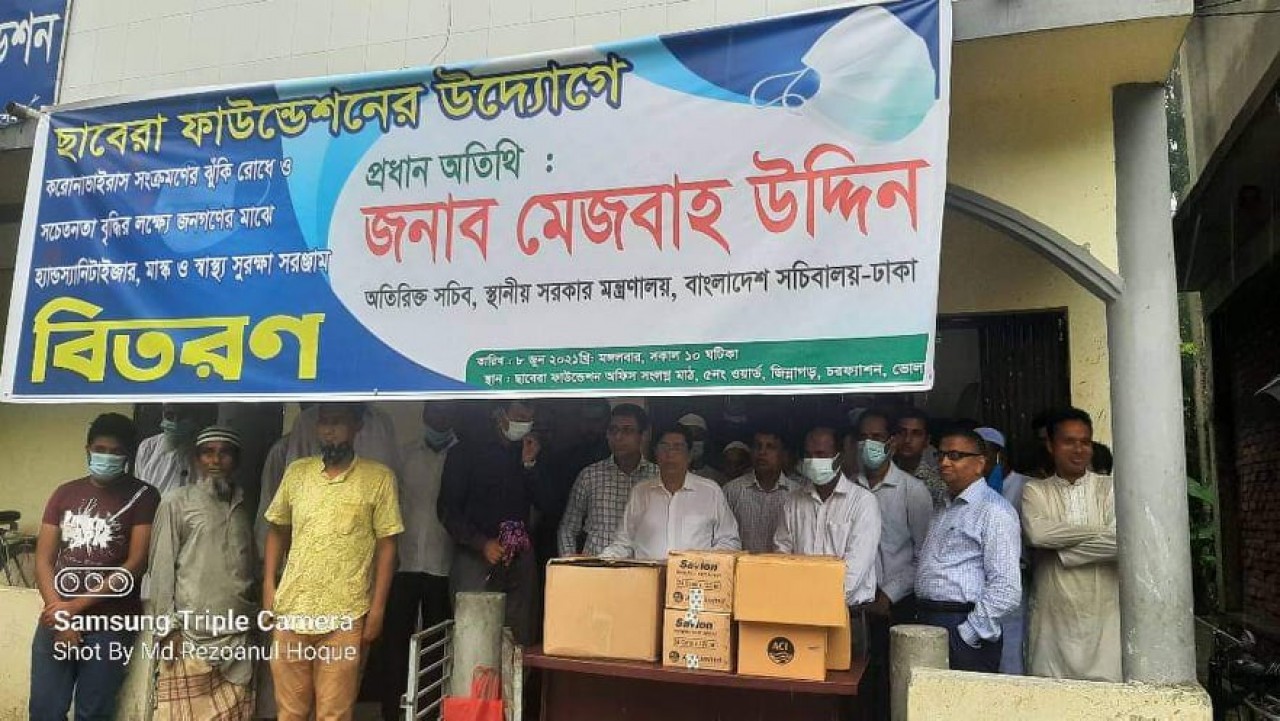 বাংলার কণ্ঠ প্রতিবেদক : চরফ্যাসন উপজেলায় আজ করোনা ভাইরাস সংক্রমণ ঝঁকি রোধে ও সচেতনতা বৃদ্ধির লক্ষ্যে জনগণের মাঝে মাস্ক, হ্যান্ডস্যানেটাইজার ও স্বাস্থ্য সুরক্ষা সামগ্রী বিতরণ করা হয়েছে। মঙ্গলবার বেলা ১১ টায় স্থানীয় সামাজিক সংগঠন ছবেরা ফউন্ডেশনের উদ্যেগে উপজেলার জিন্নাগর ইউনিয়নের ৫ নং ওয়ার্ডে সুরক্ষা সরজ্ঞাম প্রদান করেন স্থানীয় সরকার মন্ত্রণালয়ের অতিরিক্ত সচিব মেজবাহ উদ্দিন।