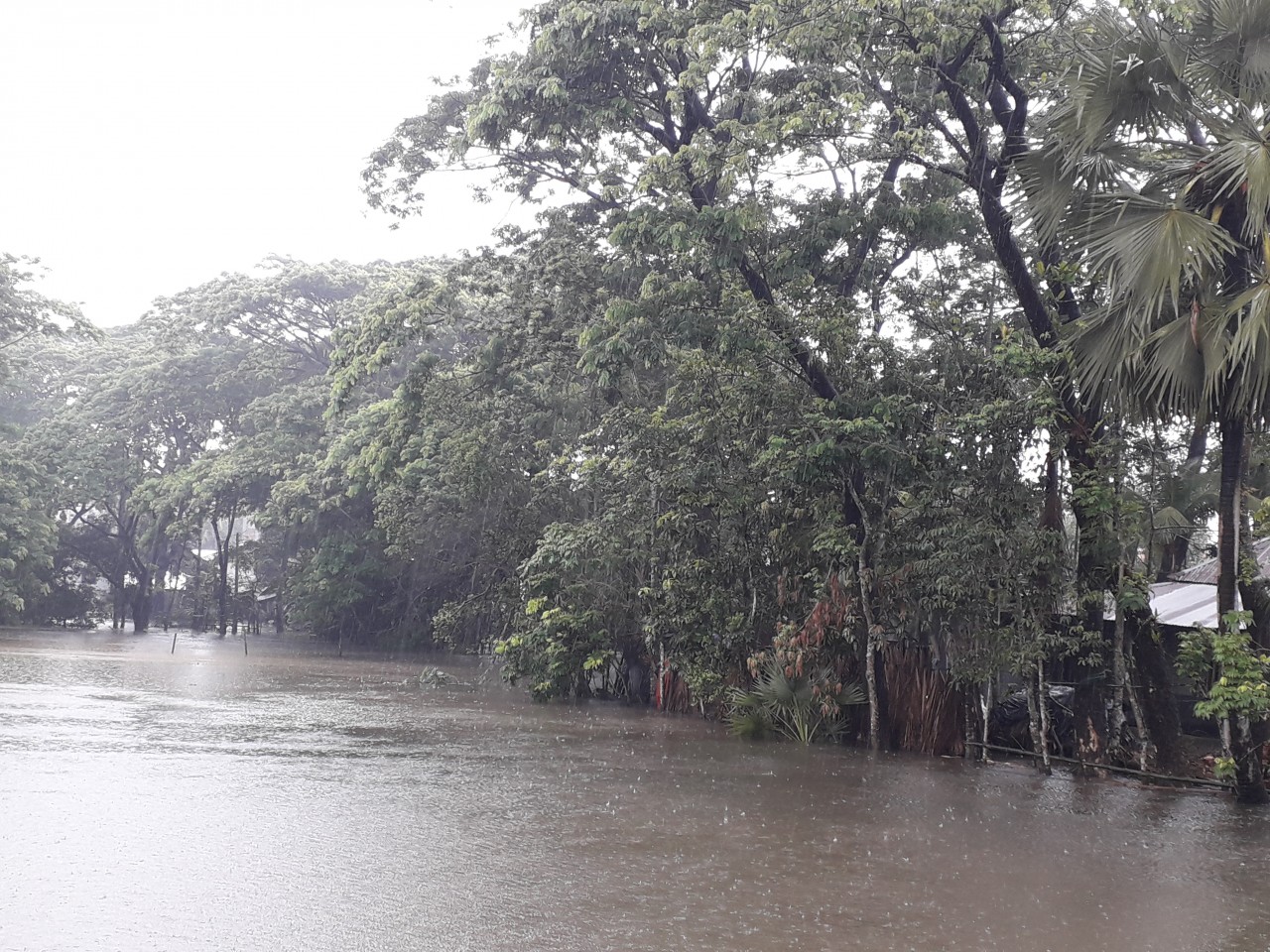 বাংলার কণ্ঠ প্রতিবেদক : ভোলার বাংলাবাজার এলাকায় পানি নিস্কাশনের ব্যবস্থা না থাকায় টানা বৃষ্টিতে ইউনিয়ন পরিষদের সামনে বালিকা উচ্চ বিদ্যালয়ের পাশে ঘরবাড়িসহ সমগ্র এলাকা পানিতে তলিয়ে আছে। ওই এলাকার মানুষের চরম দুর্ভোগ দেখা দিয়েছে। বুধবার ওই এলাকায় এমন দুর্ভোগের কথা জানান স্থানীয়রা। তাদের অভিযোগ জনপ্রতিনিধিরা এই সমস্যা সমাধানে এগিয়ে আসছেন না। এমন পরিস্থিতিতে ক্ষেতের ফসল বিনষ্ট হচ্ছে। ভেসে গেছে পুকুরের মাছ। জলাবদ্ধতা দীর্ঘস্থায়ী হলে দুর্ভোগ ভয়াবহ হবে বলেও জানান তারা। দক্ষিণ দিঘলদী ইউপি চেয়ারম্যান ইফতারুল হাসান স্বপন জানান, অ-পরিকল্পিতভাবে ঘরবাড়ি নির্মান করায়, পানি নিস্কাশন ব্যহত হচ্ছে। ড্রেনও নির্মান করা যাচ্ছে না। বিষয়টি তিনি দেখছেন বলেও জানান। অপরদিকে টানা বৃষ্টিতে বাংলাবাজার নির্মানাধিন ব্রিজের এ্যাপ্রোচ সড়কের গাইড ওয়াল ড্যাবে (বসে) গেছে। ঠিকাদার আখতার হোসেন জানান, দ্রæত ওই কাজ সংস্কার করা হবে। অপরদিকে শিবপুর ইউপি চেয়ারম্যান মোঃ জসিম উদ্দিন জানান, তার এলাকার এক নং ওয়ার্ডসহ বিভিন্ন স্থানে খালে বাঁধ থাকায় পানি নিস্কাশন হচ্ছে না। স্থানীয়রা মাছ চাষ করার জন্য ওই খালে বাঁধ দেয়। বাঁধ কেটে দেয়ার জন্য তিনি প্রশাসনের কাছে দাবি জানান। অপরদিকে টানা বৃষ্টি ও ঝড়োবাতাস থাকায় মেঘনা ও তেঁতুলিয়া নদীতে পানির চাপ বাড়ায় জেলার নি¤œাঞ্চল প্লাবিত হয়।