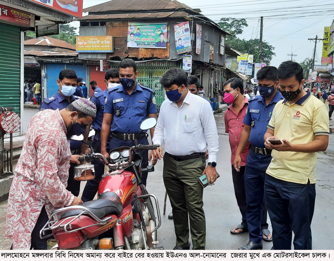 অপরদিকে উপজেলার বিভিন্ন এলাকা থেকে লালমোহন বাজারে আসা অতিরিক্ত যানবাহন ঠেকাতে সকাল থেকে মাঠে ছিলেন অতিরিক্ত পুলিশ সুপার মোঃ রাসেলুর রহমান, থানা অফিসার ইনচার্জ মোঃ মাকসুদুর রহমান মুরাদসহ পুলিশ সদস্যরা।