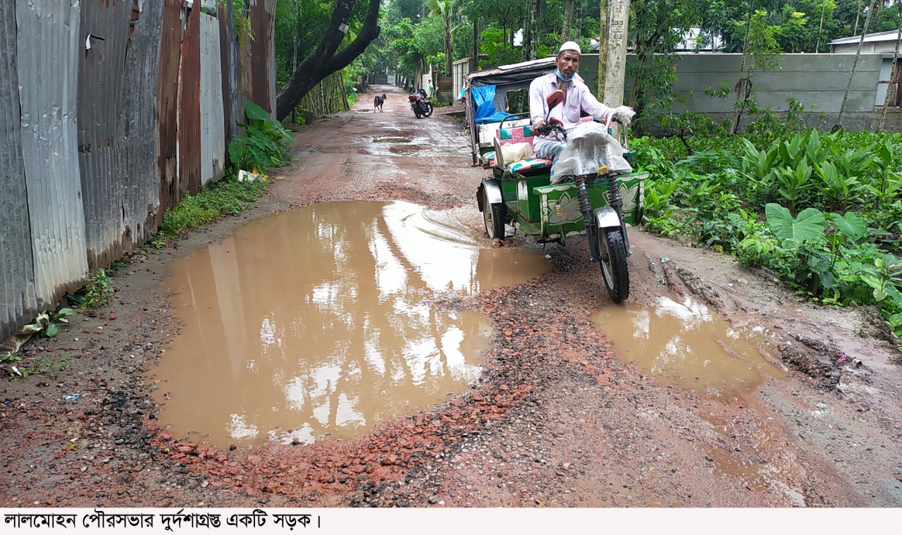 লালমোহন পৌরসভার ব্যস্ততম লঞ্চঘাট সড়ক, বর্ণালী সড়ক, ৮নং ওয়ার্ডের মোবারক আলী হাওলাদার বাড়ি সড়ক, হা-মীম একাডেমির পশ্চিম পাশের সড়কগুলোর অবস্থা সবচেয়ে নাজুক। এসড়কগুলো দিয়ে যানবাহন তো দূরের কথা মানুষও চলাচল করতে অস্বস্তিতে পরেন।