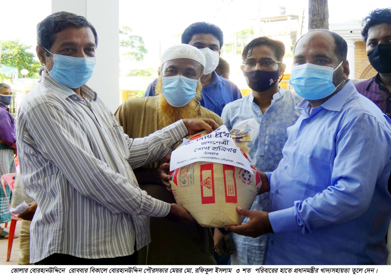 বোরহানউদ্দিন প্রতিনিধি : ভোলার বোরহানউদ্দিন পৌরসভায় করোনা ভাইরাসের কারণে কর্মহীণ হয়ে পড়া ৩ শত বিভিন্ন শ্রেণীর শ্রমিকদের মাঝে প্রধানমন্ত্রীর উপহার হিসেবে খাদ্যসামগ্রী বিতরণ করেছেন পৌর মেয়র মো. রফিকুল ইসলাম। রোববার বিকালে পৌরসভা প্রাঙ্গণে স্বাস্থ্যবিধি মেনে ওই খাদ্যসামগ্রী দেয়া হয়।