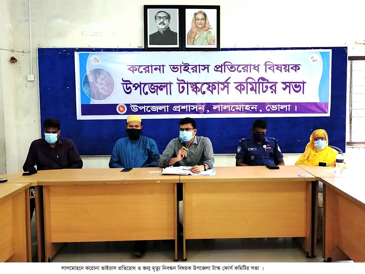লালমোহন প্রতিনিধি :a ভোলার লালমোহনে করোনা ভাইরাস প্রতিরোধ ও জন্ম মৃত্যু নিবন্ধন বিষয়ক উপজেলা টাস্ক ফোর্স কমিটির সভা অনুষ্ঠিত হয়েছে। মঙ্গলবার সকালে উপজেলা পরিষদ হলরুমে এ সভা হয়। বর্তমান পরিস্থিতিতে মাস্ক পোশাকের একটি অংশ হয়ে দাঁড়িয়েছে। তাই জনসাধারণকে মাস্ক ব্যবহার নিশ্চিত করতে হবে।