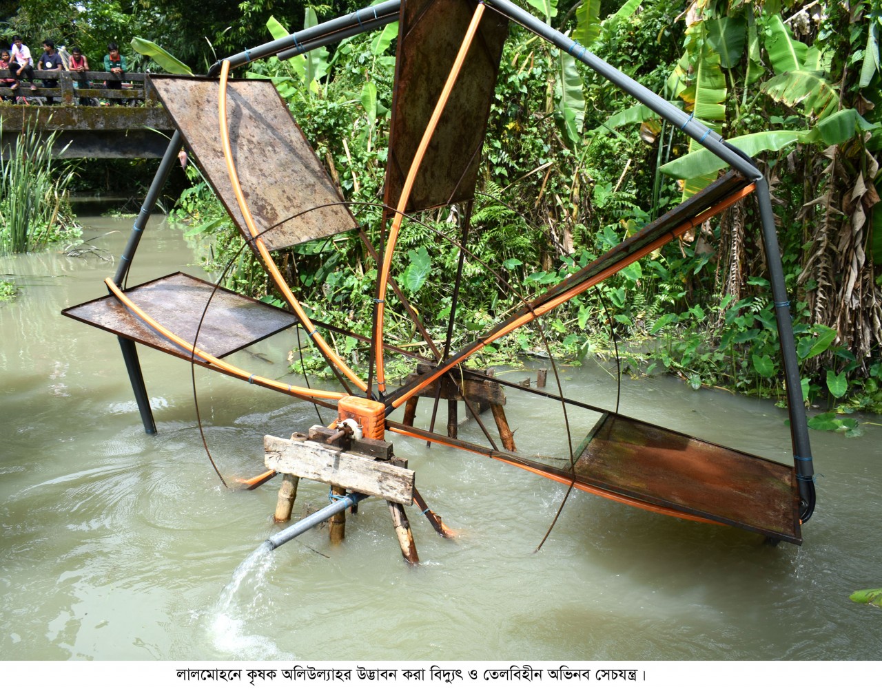 লালমোহন প্রতিনিধি : ভোলার লালমোহনে জোয়ার ভাটার পানির স্রোতকে কাজে লাগিয়ে বিদ্যুৎ ও তেলবিহীন অভিনব এক সেচযন্ত্রের উদ্ভাবন করেছেন অলিউল্যাহ নামের এক কৃষক। উপজেলার লালমোহন ইউনিয়নের ৭নং ওয়ার্ডে পেশকার হাওলা গ্রামের ওই কৃষক স্থানীয় একটি খালে সেচযন্ত্রটি বসিয়ে পরীক্ষামূলকভাবে পানি উত্তোলণ শুরু করেছেন। ইতোমধ্যে কৃষক অলিউল্যাহর এ অভিনব উদ্ভাবন স্থানীয় কৃষকদের মাঝে সাড়া ফেলেছে। এটি দেখতে প্রতিদিনই ভিড় করছে উৎসুক জনতা।