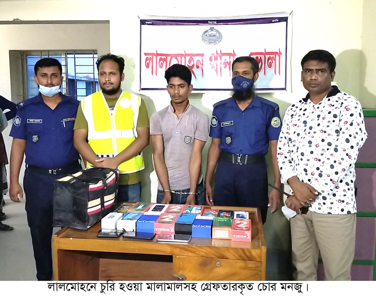 লালমোহন থানার ভারপ্রাপ্ত কর্মকর্তা (ওসি) মো. মাকসুদুর রহমান মুরাদ বলেন, শনিবার রাতে লালমোহন পৌর শহরের মা টেলিকমের টিনের চালা কেটে দোকান থেকে প্রায় ১৭ টি স্মার্টফোন চুরি করা হয়। রোববার দুপুরের দিকে ওই দোকানের মালিক রিয়াজ বাদী হয়ে অজ্ঞাত আসামী করে লালমোহন থানায় একটি চুরির মামলা করেন। এরপর বিকালের দিকে গোপন সংবাদের ভিত্তিতে চুরি হওয়া মালামাল ও চোরের অবস্থান জানতে পেরে অভিযান চালিয়ে তাকে গ্রেফতার করা হয়।