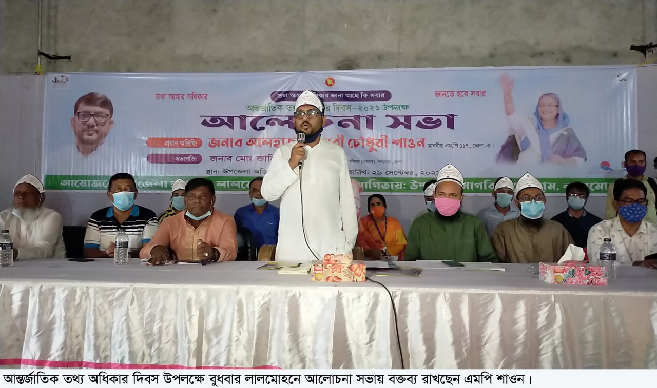 লালমোহন প্রতিনিধি : প্রধানমন্ত্রী শেখ হাসিনা সরকারে থাকার কারণে মানুষের অবাধ তথ্য প্রবাহ নিশ্চিত হয়েছে বলে মন্তব্য করেছেন ভোলা-৩ আসনের এমপি নূরুন্নবী চৌধুরী শাওন। বুধবার লালমোহন উপজেলা হলরুমে উপজেলা প্রশাসন ও কোস্ট ট্রাস্টের নাগরিক ফোরাম আয়োজিত আন্তর্জাতিক তথ্য অধিকার দিবস উপলক্ষে র্যালী ও এক আলোচনা সভায় প্রধান অতিথির বক্তব্য রাখেন এমপি শাওন। এসময় তিনি তথ্য অধিকার আইনকে যুগান্তকারী উল্লেখ করে বলেন, এ আইন প্রয়োগের মধ্য দিয়ে স্বচ্ছতা বৃদ্ধি পেয়েছে। দুর্নীতিমুক্ত ও জবাবদিহিমূলক প্রতিষ্ঠান গড়ে তোলার সুযোগ সৃষ্টি হয়। এই আইন যত বেশি প্রয়োগ হবে, রাষ্ট্র ও সমাজে তত বেশি সুশাসন প্রতিষ্ঠার ইতিবাচক পরিবেশ সৃষ্টি হবে।