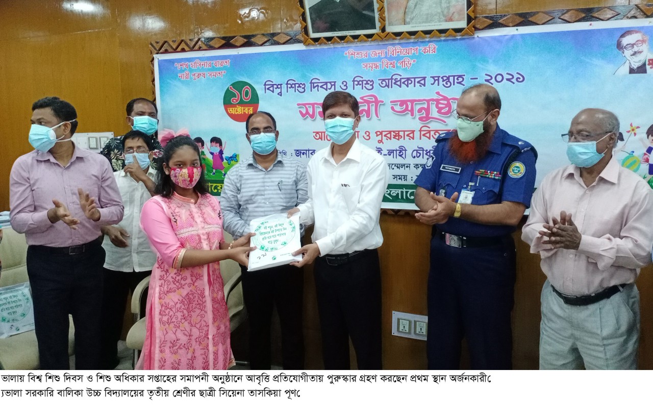 জেলা প্রশাসন ও বাংলাদেশ শিশু একাডেমীর আয়োজনে আলোচনা সভা শেষে আবৃত্তি, গান, নৃত্য, রচনা, চিত্রাংকন প্রতিযোগিতায় বিজয়ী শিশুদের মাঝে পুরস্কার বিতরণ করা হয়।