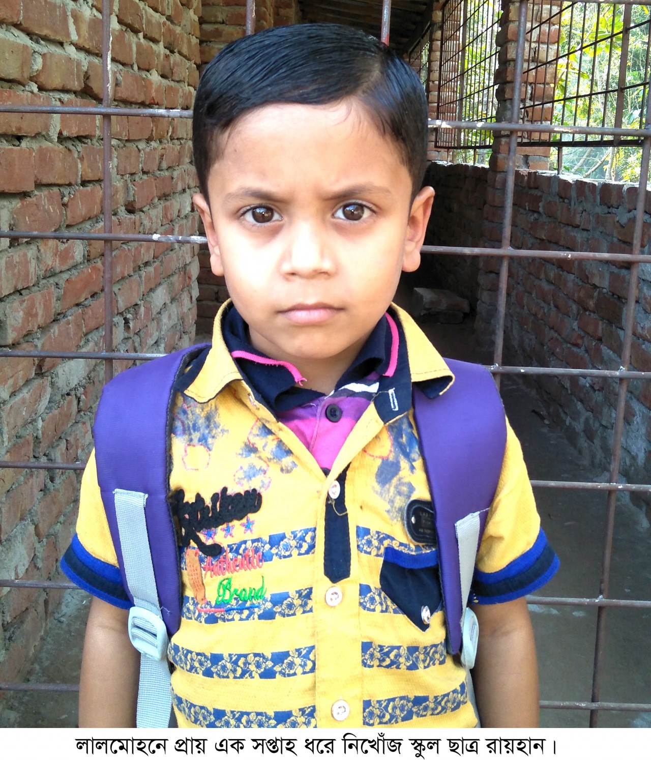 লালমোহন প্রতিনিধি : ভোলার লালমোহনে প্রায় এক সপ্তাহ আগে নিখোঁজ হয় মো. রায়হান নামের তৃতীয় শ্রেণির এক স্কুল ছাত্র। নিখোঁজের পর থেকে একমাত্র পুত্র সন্তানকে খুঁজে না পেয়ে মা-বাবার গগণবিদারী আর্তনাদে ভারী হয়ে উঠেছে লালমোহন পৌর শহরের ৭ নং ওয়ার্ডের পেশকার হাওলা গ্রামের আকাশ-বাতাস। নিখোঁজ ছেলের ছবি ও স্কুলের ব্যাগ বুকে ধরে তার স্মৃতিগুলো মনে করে ডুকরে ডুকরে কেঁদে উঠছেন মা-বাবা। নিখোঁজ রায়হান ওই এলাকার রাশেদ-ঝর্ণা দম্পতির একমাত্র পুত্র সন্তান এবং স্থানীয় একটি কিন্ডার গার্টেনের তৃতীয় শ্রেণির ছাত্র।