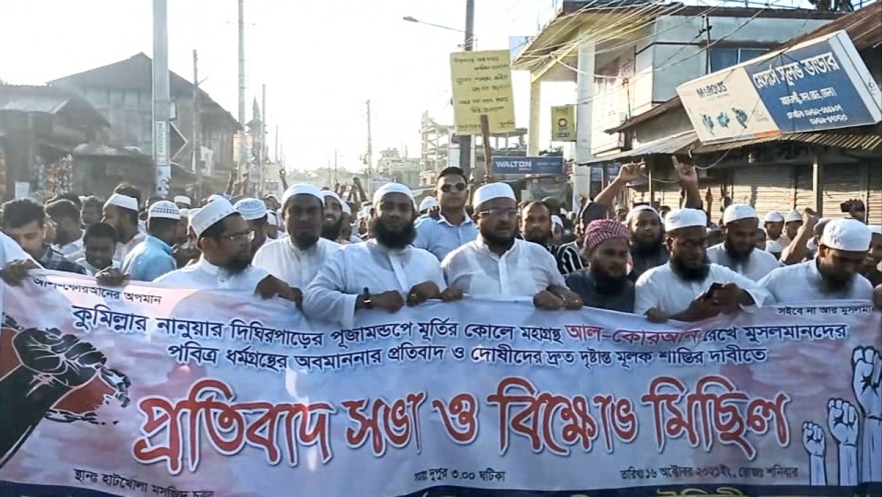 প্রতিবাদ সভায় বক্তারা কুমিল্লায় পবিত্র কোরআন অবমাননার ঘটনায় দ্রুত তদন্ত করে আইনের আওতায় এনে দোষীর দৃষ্টান্তমূলক শাস্তির দাবি করেন।