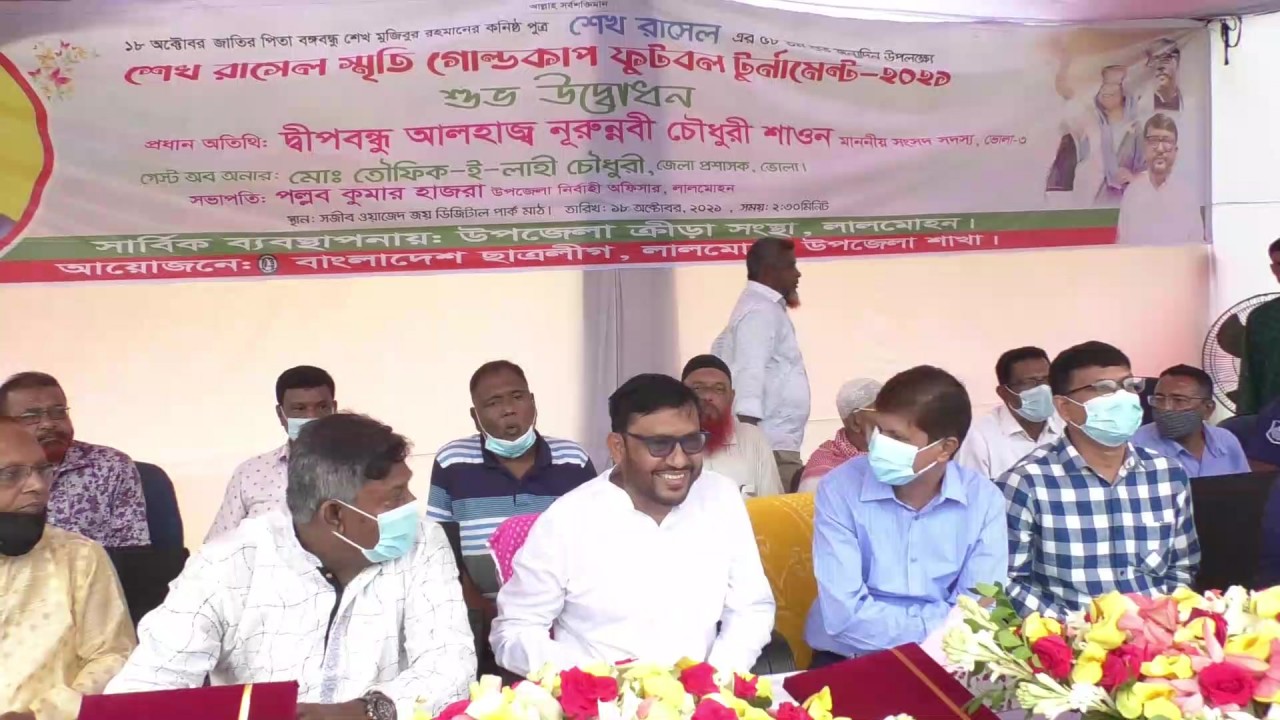 লালমোহন ছাত্রলীগের আয়োজনে ফুটবল টুর্নামেন্টে মোট ৮ দল অংশ গ্রহণ করছে। উদ্বোধনী খেলায় কালমা ইউনিয়ন একাদশের সাথে রমাগঞ্জ ইউনিয়নের খেলা গোল শূণ্য ড্র হয়েছে।