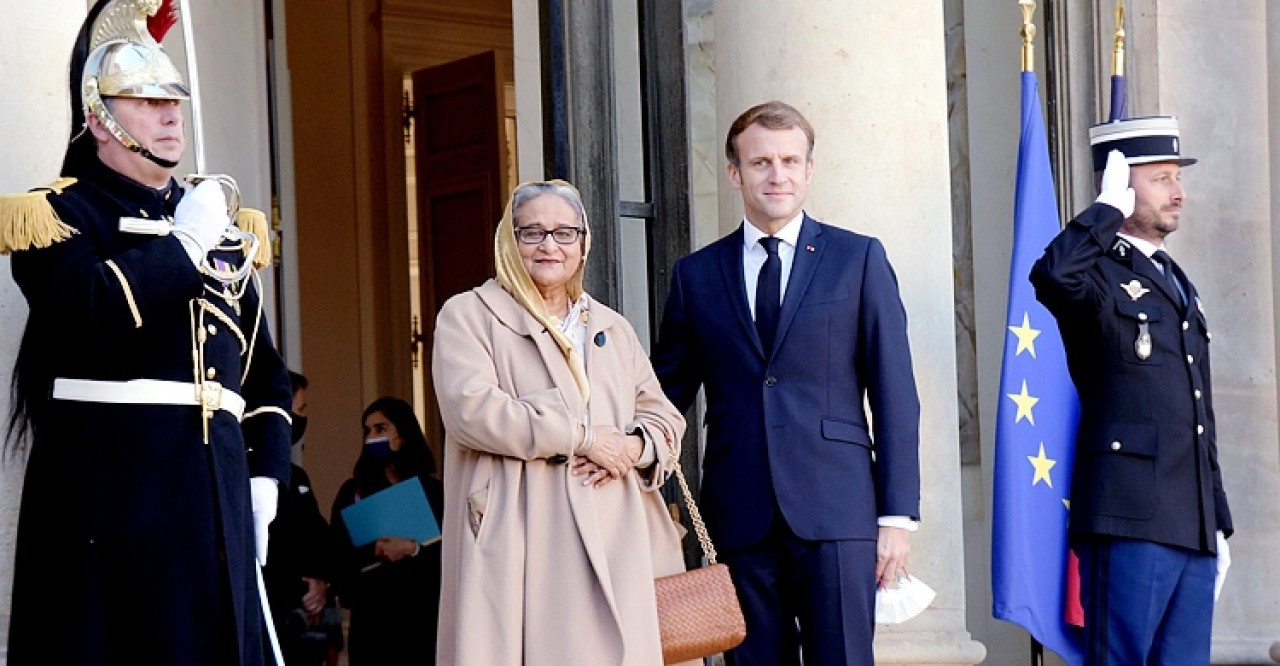 বিমানবন্দর থেকে প্রধানমন্ত্রী শেখ হাসিনা ফ্রান্সের প্রেসিডেন্ট ইমানুয়েল ম্যাক্রোঁর সরকারি বাসভবন এলিসি প্যালেসে পৌঁছালে তাকে উষ্ণ অভ্যর্থনা জানান ম্যাক্রোঁ।