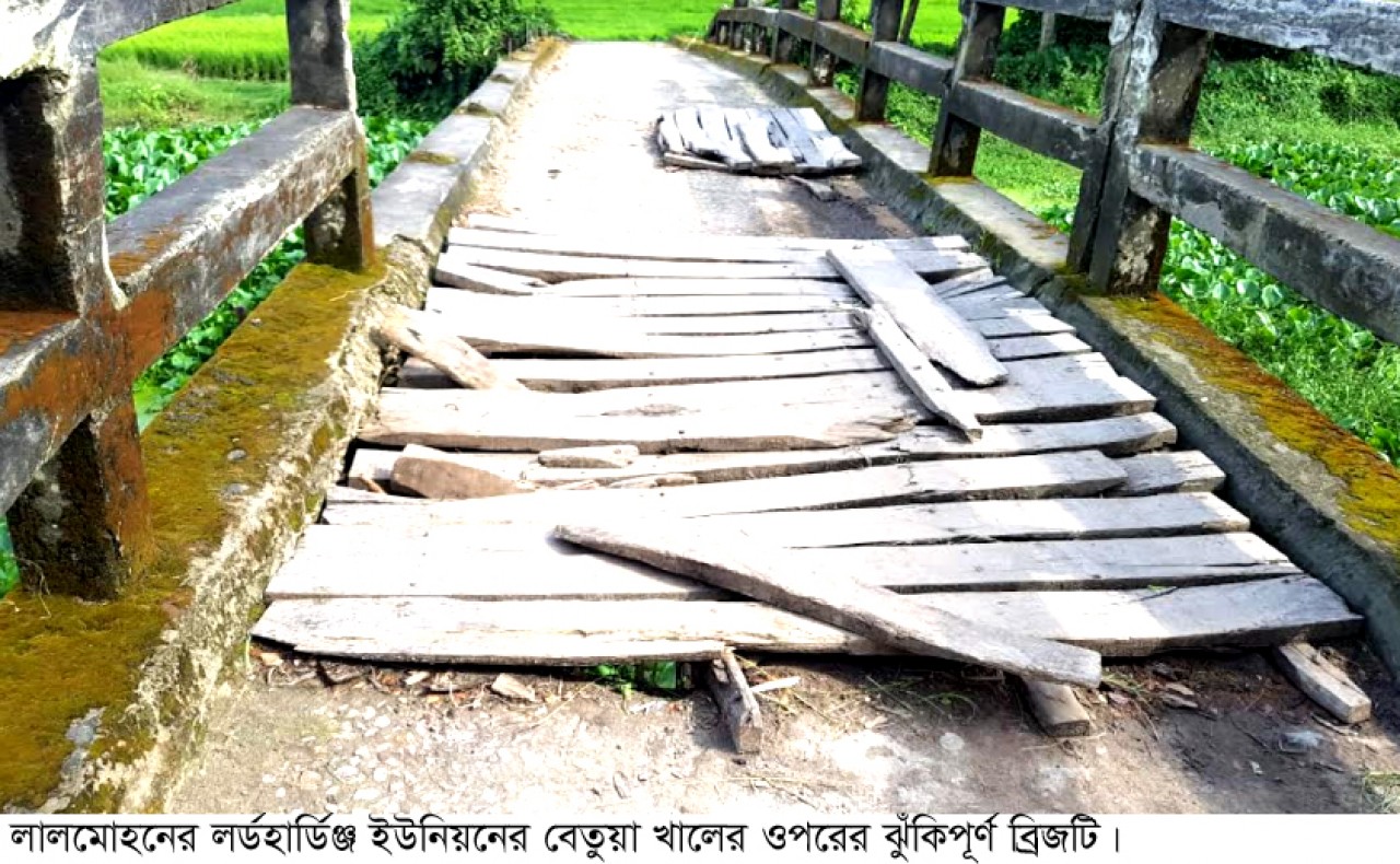 লালমোহন প্রতিনিধি : ভোলার লালমোহনে কয়েক বছর ধরে একটি ব্রিজ সংস্কার না করায় চরম ভোগান্তি পোহাচ্ছেন তিন গ্রামের হাজারও মানুষ। এ তিন গ্রামের মানুষের যাতায়াতের একমাত্র ভরসা উপজেলার লর্ডহার্ডিঞ্জ ইউনিয়নের বেতুয়া খালের ওপরের ব্রিজটি। ব্রিজের ওপর দিয়ে প্রতিদিন রিকশা, সিএনজি, টেম্পু, মটরসাইকেলসহ চলাচল করছে মানুষজন। ঝুঁকিপূর্ণ এ ব্রিজটি দিয়ে যাতায়াতের কারণে প্রতিনিয়ত ঘটছে ছোট-বড় দুর্ঘটনা। আর ব্রিজটির কারণে দুর্ভোগে রয়েছে ফাতেমাবাদ, চাঁদপুর ও অন্যদা প্রসাদ গ্রামের হাজার হাজার মানুষ।
