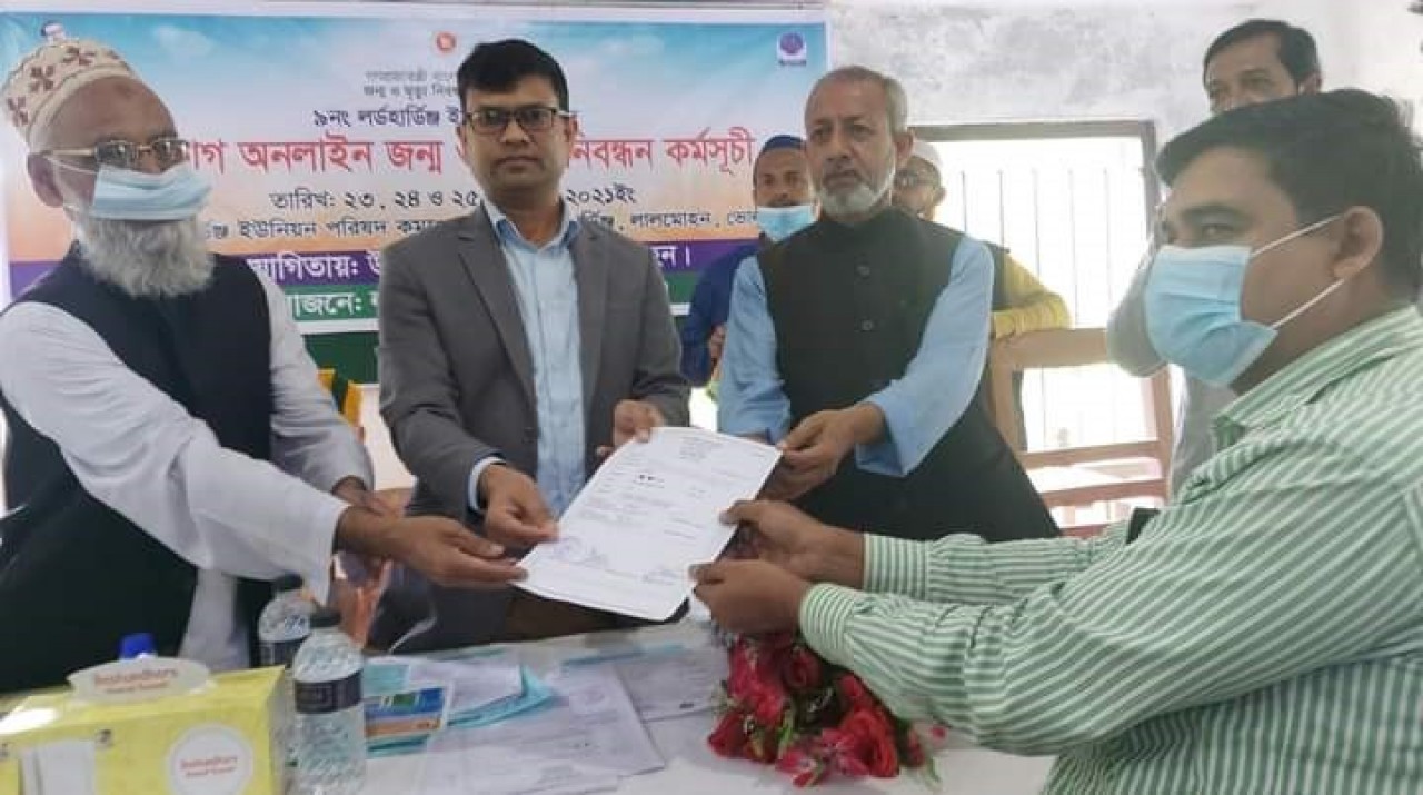 ইব্রাহিম আকাশ , লালমোহন : ভোলার লালমোহন উপজেলার সকল ইউনিয়নের ওয়ার্ড পর্যায়ে অনলাইন জন্ম ও মৃত্যু নিবন্ধন কার্যক্রম বেগবান করার লক্ষে ৯নং লর্ডহার্ডিঞ্জ ইউনিয়নে শতভাগ অনলাইন জন্ম ও মৃত্যু নিবন্ধন কর্মসূচীর উদ্বোধন করা হয়েছে।