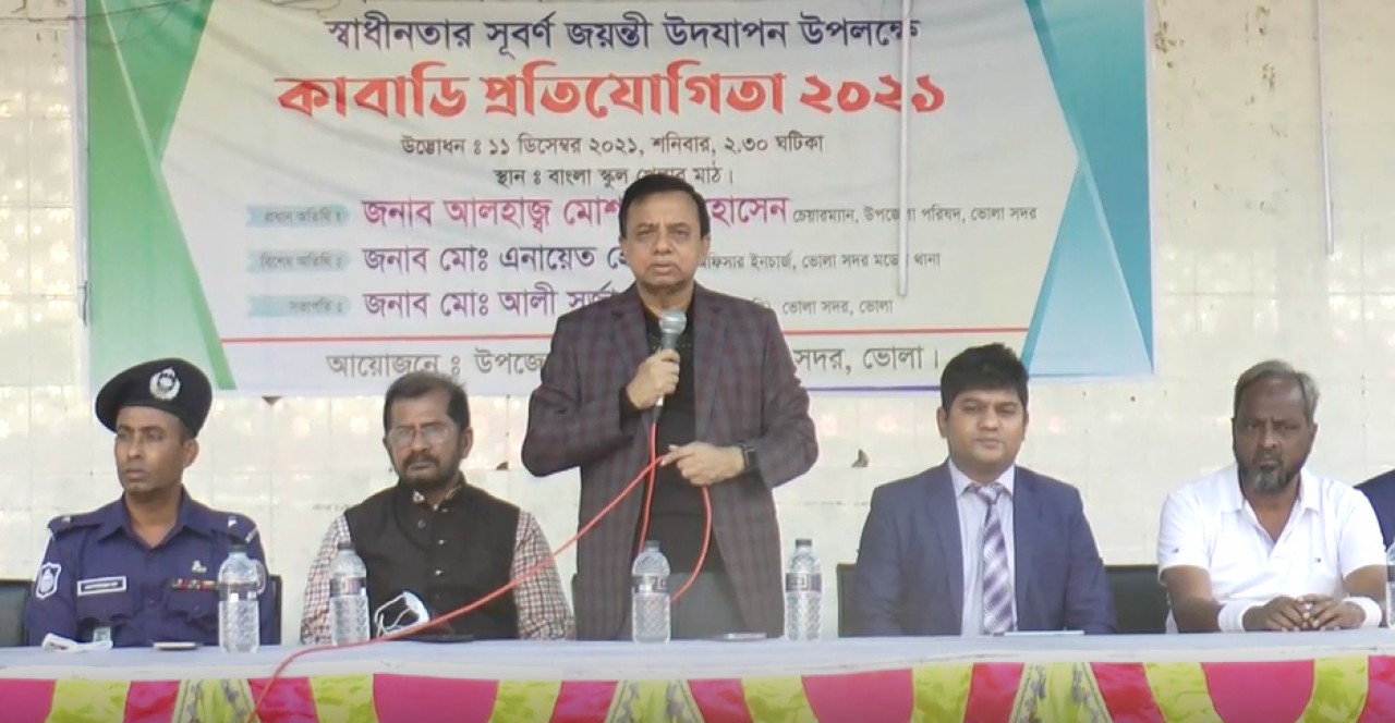 বাংলার কণ্ঠ প্রতিবেদক : ভোলায় জাতির জনক বঙ্গবন্ধু শেখ মুজিবুর রহমানের জন্মশতবার্ষিকী ও স্বাধীনতার সুবর্ণজয়ন্তি উপলক্ষে কাবাডি প্রতিযোগিতা শুরু হয়েছে। শনিবার বিকালে শহরের বাংলাস্কুল মাঠে এর উদ্বোধন করেন সদর উপজেলা চেয়ারম্যান মোশারেফ হোসেন। কাবাডি ফেডারেশনের আয়োজনে ও জেলা ক্রীড়া সংস্থার তত্ত¡াবধানে এস্যিান্ড আলী সুজার সভাপতিত্বে খেলার উদ্বোধন করেন উপজেলা চেয়ারম্যান মোঃ মোশারফ হোসেন ।