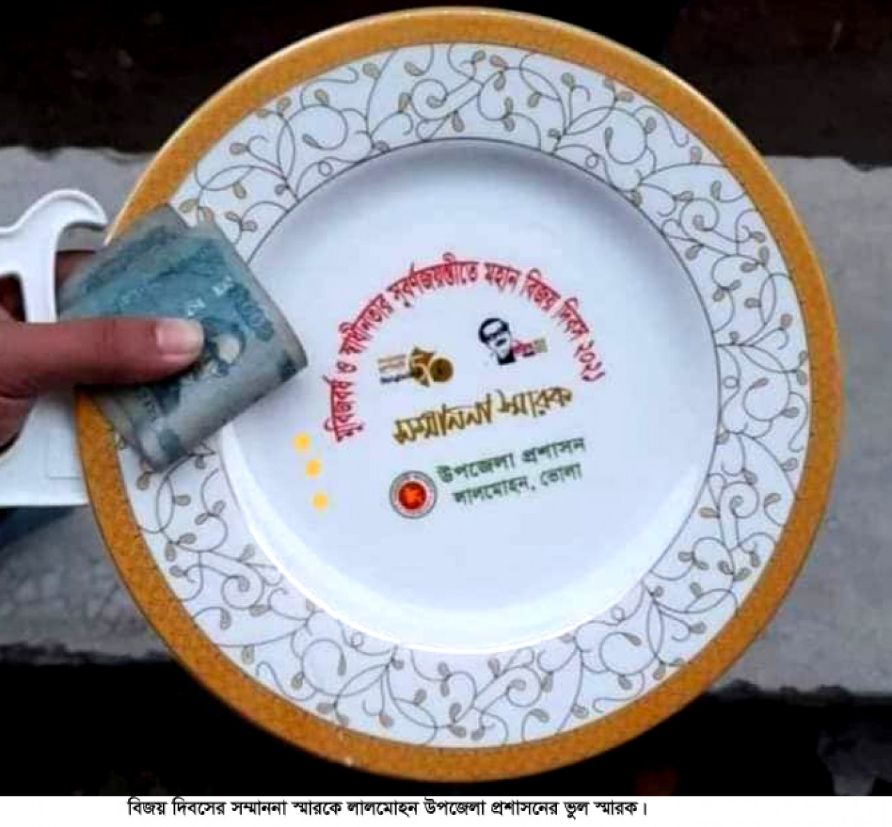 এব্যাপারে লালমোহন উপজেলা নির্বাহী কর্মকর্তা (ইউএনও) পল্লব কুমার হাজরা বলেন, বরিশালের একটি প্রেসে বিজয় দিবস উপলক্ষে সম্মাননা স্মারকগুলো ছাড়াও আরও অনেক কিছু প্রিন্ট করা হয়েছে। তবে সম্মাননা স্মারকের প্লেটেই কেবল ভুল হয়েছে। স্মারকগুলো বরিশাল থেকে সরাসরি অনুষ্ঠানের মাঠে নেয়া হয়। এরপর কয়েকটি স্মারক বিতরণ করা হলে ওই ভুলটি চোখে পড়ে উপজেলা প্রশাসনের। পরে ওইসব স্মারকগুলো মাঠ থেকে সরিয়ে নেয়া হয়। এসব স্মারক ওই প্রেস কর্তৃপক্ষ ফেরৎ নিবেন বলে জানিয়েছেন। এ ঘটনায় ওই প্রেস কর্তৃপক্ষের কাছে লিখিতভাবে ব্যাখা চাওয়া হয়েছে বলেও জানান ইউএনও।