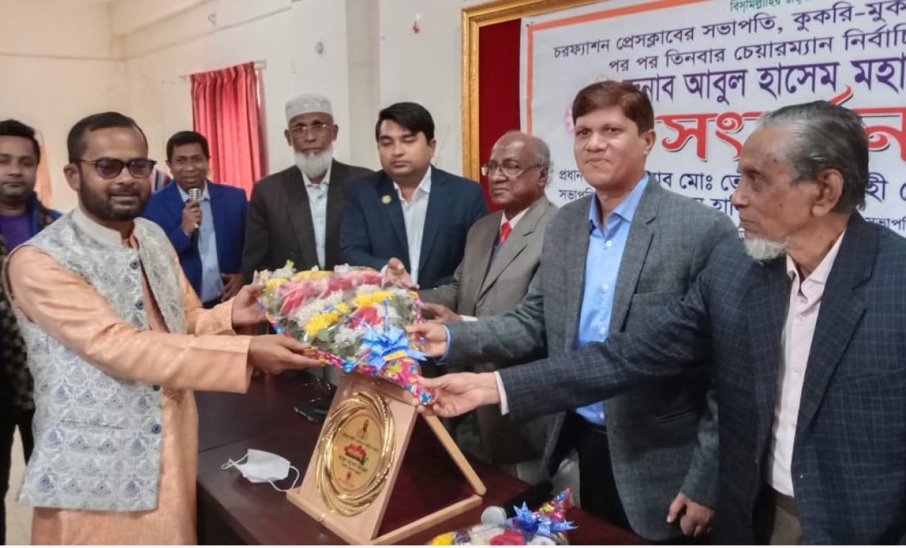 বুধবার (২৯ডিসেম্বর) বেলা ১২টায় ভোলা প্রেসক্লাব মিলনায়তনে ক্লাবের সভাপতি এম হাবিবুর রহমানের সভাপতিত্বে বিচ্ছিন্ন দ্বীপ এলাকা কুকরি-মুকরীর অসহায় ও খেটে খাওয়া মানুষের জীবন মান উন্নয়নে বিশেষ অবদান রাখায় চরফ্যাশন প্রেসক্লাবের সভাপতিকে এ সংবর্ধনা দেয়া হয়। এ সময় ভোলা জেলা প্রশাসক তৌফিক ইলাহী চৌধুরী প্রধান অতিথি হিসেবে তাঁর হাতে ক্রেস্ট তুলে দেন। এছাড়াও ক্লাবের অন্যান্য সদস্যরা এ চেয়ারম্যানকে উত্তরীয় চাদর পড়িয়ে দেন। সংবর্ধনা অনুষ্ঠানে বিশেষ অতিথি হিসেবে উপস্থিত ছিলেন,চরফ্যাশন উপজেলা নির্বাহী কর্মকর্তা আল নোমান,প্রবীন সাংবাদিক আবু তাহের,অধ্যক্ষ ফারুকুর রহমান,ইন্ডিপেন্ডেন্ট পত্রিকার প্রতিনিধি কামাল সুলতান,ভোলা প্রেসক্লাবের সাবেক সম্পাদক হুমায়ুন কবির প্রমুখ। এসময় বক্তব্য রাখেন,ক্লাবের সম্পাদক আরটিভি প্রতিনিধি অমিতাভ অপু,মাছরাঙ্গা চ্যানেলের প্রতিনিধি হাসিব রহমান,একাত্তর টিভি প্রতিনিধি কামরুল ইসলাম,এটিএন বাংলা প্রতিনিধি সিদ্দিকুল্লাহ ও চ্যানেল টুয়েন্টি ফোর প্রতিনিধি আদিল হোসেন তপু , কাল বেলা প্রতিনিধি মনিরুল ইসলাম প্রমুখ। অনুষ্ঠানে বক্তারা বলেন, চরফ্যাশন প্রেসক্লাবের সভাপতি ও সাংবাদিক আবুল হাসেম মহাজন কুকরি-মুকরী ইউনিয়ন পরিষদে বার বার নির্বাচিত হয়ে প্রান্তিক জনগোষ্ঠীকে সমাজের মূল ধারায় অন্তর্ভূক্ত করতে নিরলস পরিশ্রম করে আজ এ চারাঞ্চল এলাকাকে একটি পর্যটন নগরে রূপান্তরীত করতে বিশেষ ভূমিকা রেখেছেন। পাশাপাশি চরফ্যাশন উপজেলার সাংবাদিকদের মানোন্নয়নে তিনি আরও কাজ করে যাবেন বলে বক্তারা আশাবাদ ব্যক্ত করেন।