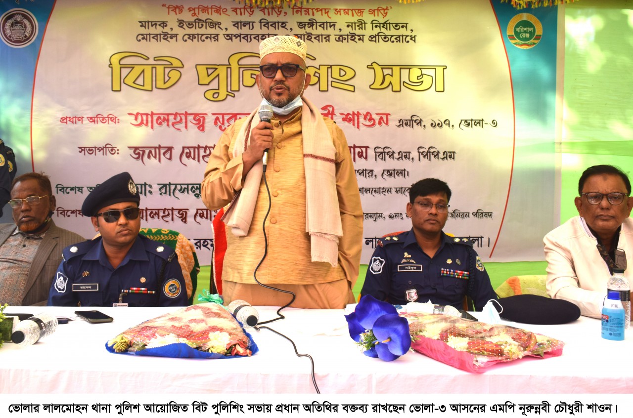 রবিবার দুপুরে ভোলার লালমোহন উপজেলার লর্ডহার্ডিঞ্জ ইউনিয়ন পরিষদ প্রাঙ্গনে লালমোহন থানা পুলিশ আয়োজিত বিট পুলিশিং সভায় প্রধান অতিথির বক্তব্যে এমপি শাওন এসব কথা বলেন। এছাড়াও তিনি অস্বচ্ছল মুক্তিযোদ্ধাদের জন্য বরাদ্দকৃত বীর নিবাসের ভিত্তি প্রস্তর উদ্বোধন করেন। এরআগে লালমোহন বালিকা মাধ্যমিক ও সরকারি মডেল মাধ্যমিক বিদ্যালয়ের শিক্ষার্থীদের মধ্যে নতুন পাঠ্য বই বিতরণ করেন এমপি নূরুন্নবী চৌধুরী শাওন।