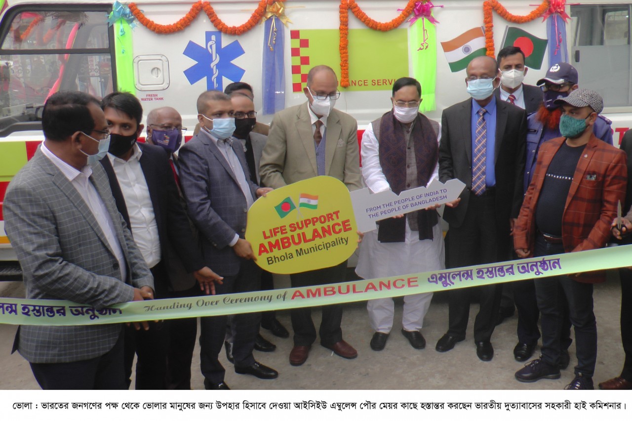 দেশের বৃহত্তর দ্বীপ জেলা ভোলার মানুষের চিকিৎসা সুবিধার জন্য ভারত সরকারের পক্ষ থেকে আইসিইউ সুবিধা সম্পন্ন একটি অত্যাধুনিক এ্যাম্বুলেন্স উপহার দেয়া হয়েছে। শনিবার বিকালে ভোলা পৌরসভার হলরুমে আনুষ্ঠানিকভাবে পৌর মেয়র মনিরুজ্জামানের কাছে এ্যাম্বুলেন্সর চাবি আনুষ্ঠানিক ভাবে হস্তান্তর করেন খুলনার ভারতীয় দুতাবাসের সহকারী হাই কমিশনার রাজেশ কুমার রায়না।