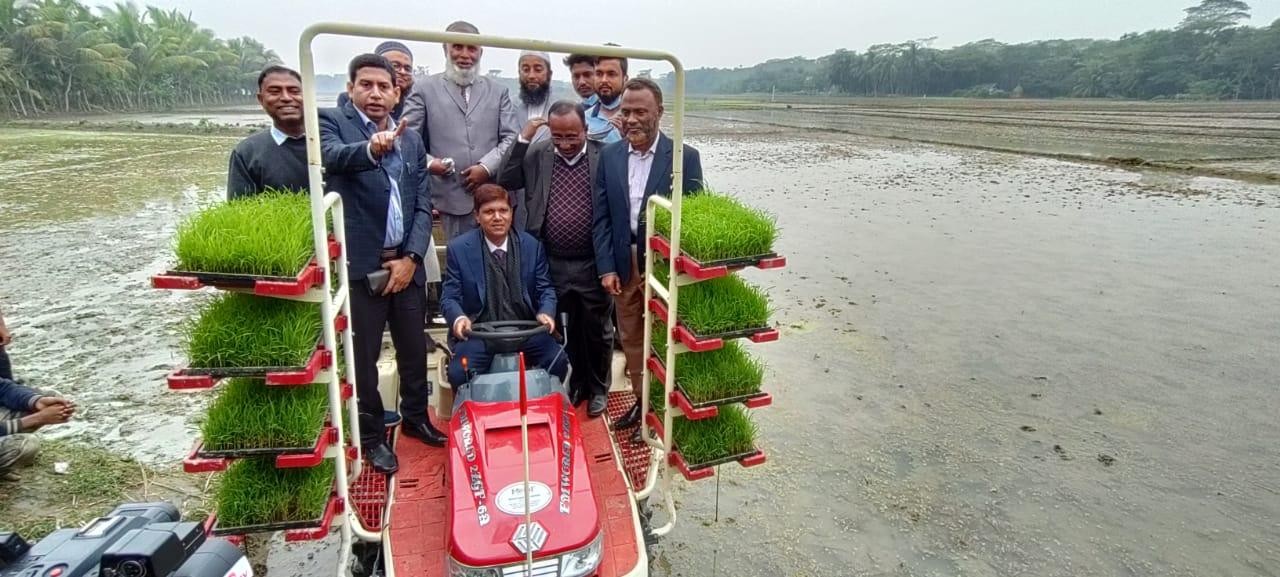 হাসনাইন আহমেদ মুন্না II ভোলা সদরের ধনিয়া ইউনিয়নে এই প্রথম অত্যাধুনিক রাইস ট্রান্সপ্লান্ট মেশিনের মাধ্যমে ধানের চারা রোপণ কার্যক্রমের উদ্বোধন করা হয়েছে। সোমবার সকাল ১১ টায় কার্যক্রমের উদ্বোধন করেন জেলা প্রশাসক মো: তৌফিক-ই-লাহী চৌধুরী। ভোলা সদর উপজেলা কৃষি সম্প্রসারণ অধিদপ্তরের আয়োজনে অনুষ্ঠানে সভাপতিত্ব করেন বরিশাল বিভাগীয় কৃষি বিভাগের অতিরিক্ত পরিচালক মো: তাওফিকুল আলম।