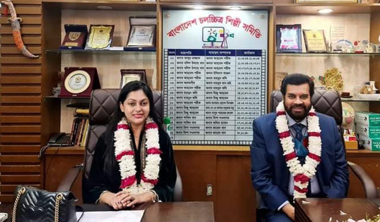 চলচ্চিত্র শিল্পী সমিতির চেয়ারে বসলেন সদ্য নির্বাচিত সভাপতি ইলিয়াস কাঞ্চন ও আপিল বোর্ডের রায়ে বিনা প্রতিদ্বন্দ্বিতায় নির্বাচিত নিপুণ। এর আগে ইলিয়াস কাঞ্চনকে শপথ পাঠ করান মিশা সওদাগর।