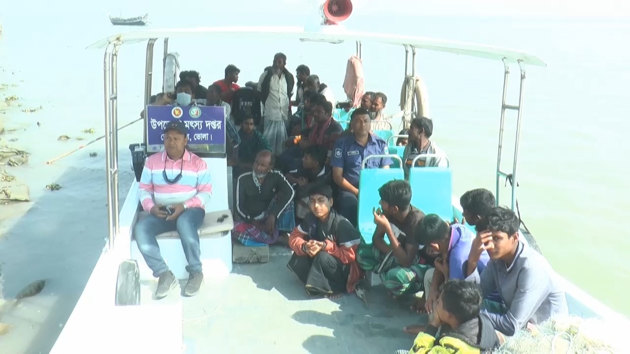 ভোলায় কোস্টগার্ডের অভিযানে ২টি অবৈধ আর্টিসানাল ট্রলিং বোট ও জালসহ ২০ জেলে আটক