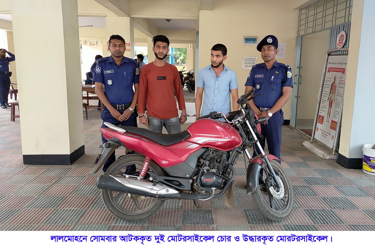 লালমোহন থানার ওসি (তদন্ত) এনায়েত হোসেন জানান, গত শুক্রবার কলেজপাড়া এলাকার সেলিম নামে এক ব্যক্তির বাসা থেকে মোটরসাইকেল চুরি হয়। সিসি ক্যামেরা দেখে কলেজ পাড়ার সিরাজ হায়দারের ছেলে মাদকাশক্ত তিস্তান হায়দারকে শনাক্ত করা হয়। তাকে আটক করলে সে চুরির কথা স্বীকার করে। মোটরসাইকেলটি সে চরফ্যাশন উপজেলায় তার বন্ধুর বাসায় নিয়ে রাখে। এঘটনায় সেলিম বাদী হয়ে মামলা দায়ের করেছে। আটক দু’জনকে সোমবার আদালতের মাধ্যমে জেল হাজতে প্রেরণ করা হয়েছে।