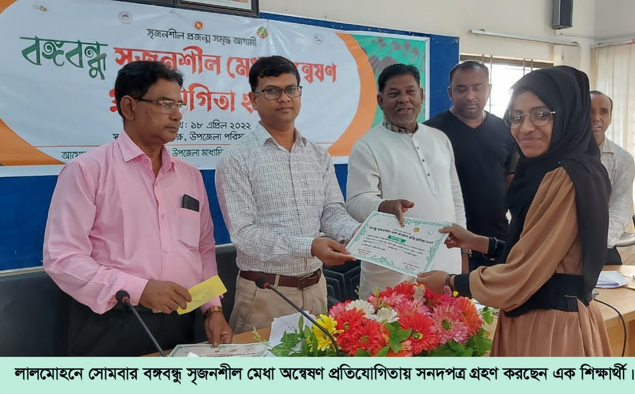 প্রতিবছরের ন্যায় এবারো সারা দেশে সৃজনশীল মেধা অন্বেষণ প্রতিযোগিতা অনুষ্ঠিত হয়। এবছর জাতির পিতার নামে ‘বঙ্গবন্ধু সৃজনশীল মেধা অন্বেষণ প্রতিযোগিতা’ নামকরণ করা হয়। প্রতিযোগিতায় উপজেলা পর্যায়ে বিজয়ীরা ২৪ এপ্রিল ভোলা জেলা পর্যায়ে প্রতিযোগিতায় অংশগ্রহণ করবে।