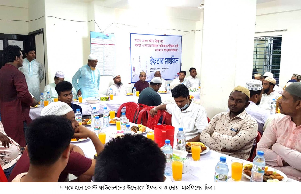 ভোলার লালমোহনে বেসরকারি উন্নয়ন সংস্থা কোস্ট ফাউন্ডেশনের উদ্যোগে ইফতার ও দোয়া মাহফিল অনুষ্ঠিত হয়েছে। মঙ্গলবার সন্ধ্যায় সংস্থাটির উপজেলা সদর কার্যালয়ের আয়োজনে এ ইফতার ও দোয়া মাহফিল অনুষ্ঠিত হয়।