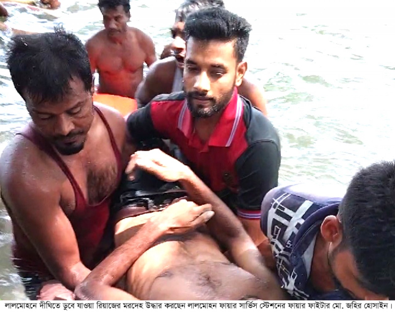 লালমোহন প্রতিনিধি : সারাদিন রোজা রেখেছেন ভোলার লালমোহন ফায়ার সার্ভিস স্টেশনের ফায়ার ফাইটার মো. জহির হোসাইন। হঠাৎ শনিবার (২৩ এপ্রিল) দুপুরে ডাক আসে দিঘিতে যুবক ডুবে যাওয়ার। ফোন পেয়ে ছুটে যান উপজেলার কালমা ইউনিয়নের জুই ব্রিকস্ সংলগ্ন একটি দীঘিতে। গিয়ে গভীর ওই দীঘিতে নিজের জীবনের পরোয়া না করে নেমে যান ডুবে যাওয়া যুবক রিয়াজ হোসেনকে উদ্ধারে। অন্তত আধা ঘন্টার প্রাণপন চেষ্টায় ওই যুবককে জীবিত উদ্ধার করতে না পারলেও উদ্ধার করা হয় মরদেহ। সারাদিনের রোজার ক্লান্তির মাঝেও নিজের সর্বোচ্চ দিয়ে ওই যুবককে জীবিত উদ্ধারে চেষ্টা করেছেন ফায়ার ফাইটার মো. জহির হোসাইন। তবে জীবিত উদ্ধার করা সম্ভব হয়নি। তবুও ওই যুবকের মরদেহটি উদ্ধারে একজন ফায়ার ফাইটার হিসেবে মো. জহির হোসাইনের ভূমিকা ছিল অনন্য।